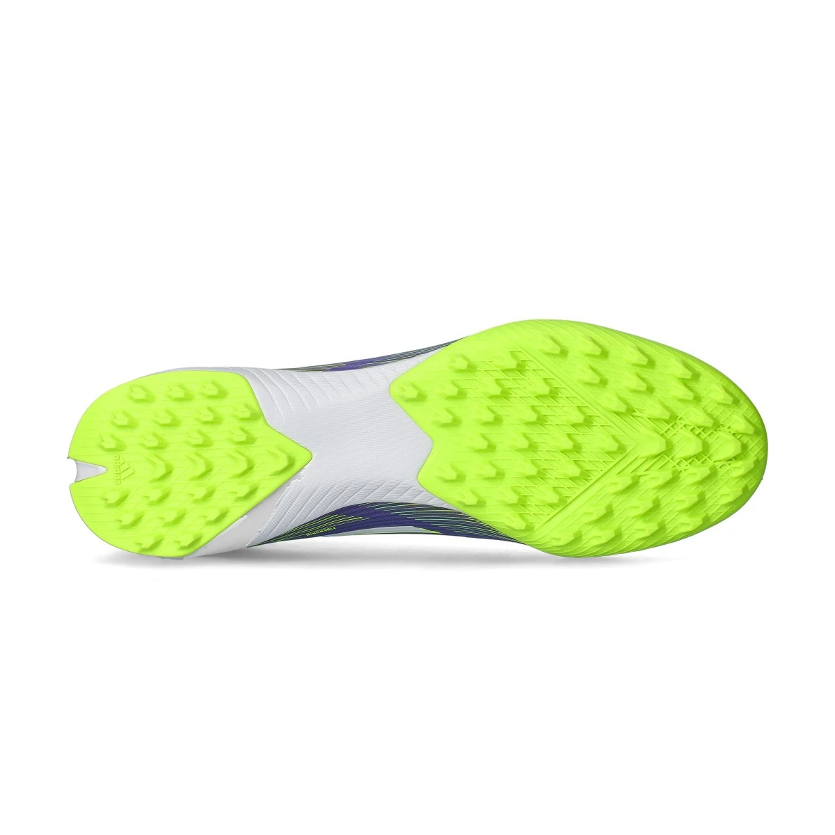 Chaussure F50 League LL Turf de la marque adidas en coloris Purple Rush-White-Lucid Lemon. Chaussure d’entrée de gamme conçue pour les terrains en moquette ou sur béton.