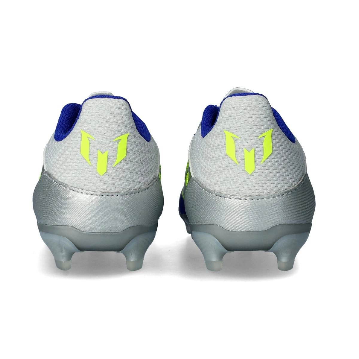 Chaussure adidas F50 League FG/MG Messi en coloris Silver Met-Solar Yellow-Lucid Blue pour enfant. Chaussure haut de gamme pour les terrains en gazon naturel.