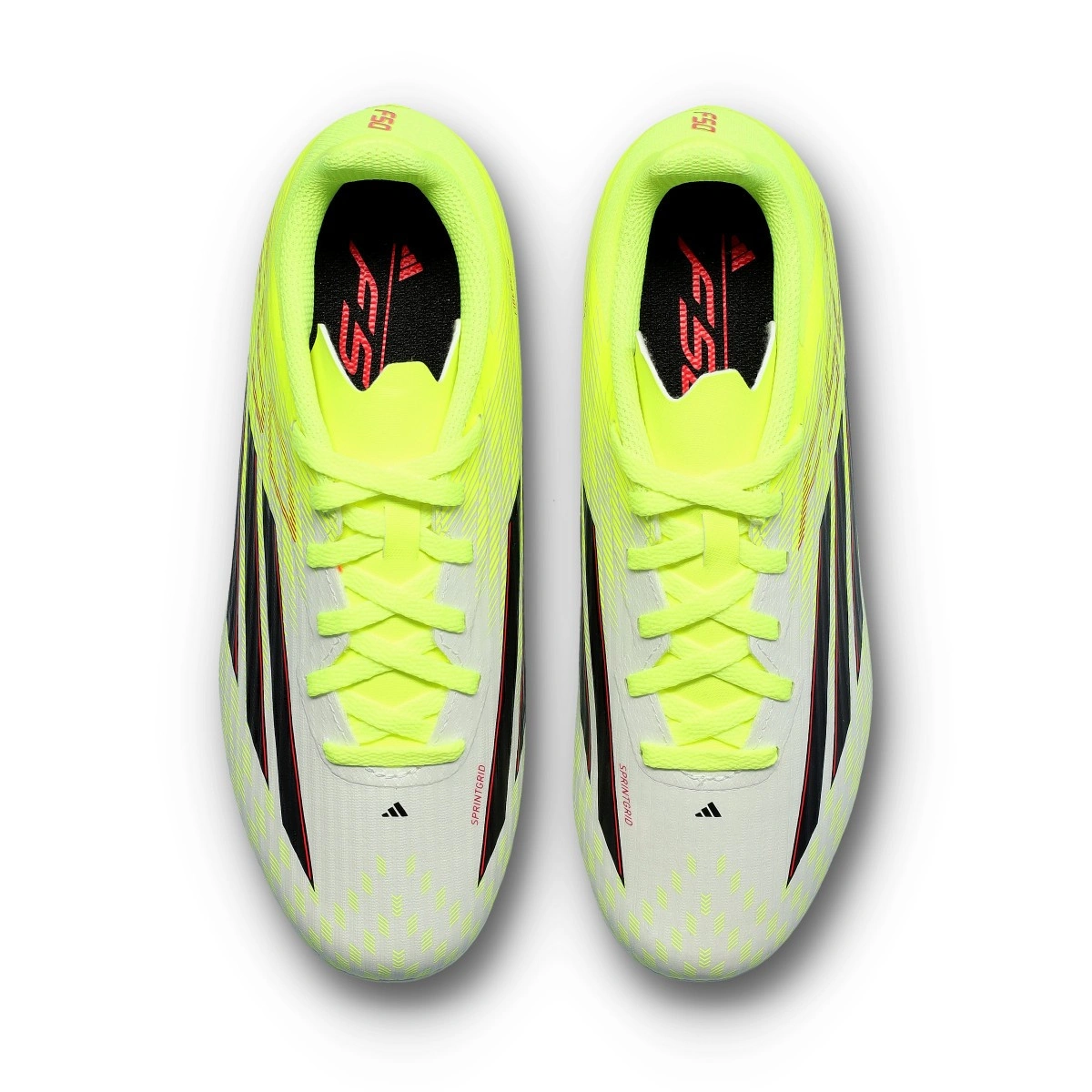Chaussure F50 League MG pour enfant de la marque adidas en coloris Team Solar Yellow-Core Black-Lucid Red pour terrains artificiels de seconde génération.