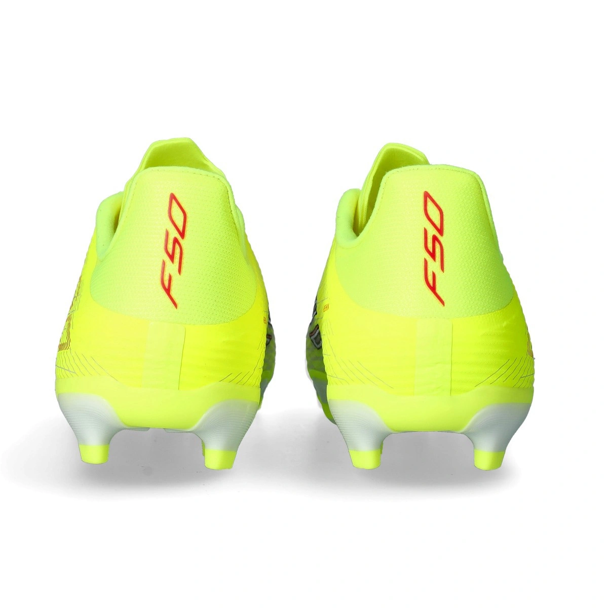 Chaussure F50 League MG de la marque adidas en coloris Team Solar Yellow-Core Black-Lucid Red pour terrains artificiels de seconde génération.