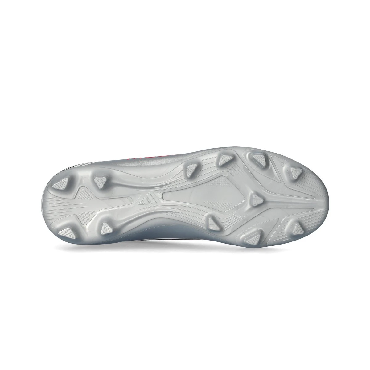 Chaussure F50 Club FG/MG pour enfant de la marque adidas en coloris White-Lucid Red-Silver Met. Chaussure d’entrée de gamme conçue pour les terrains en gazon naturel.