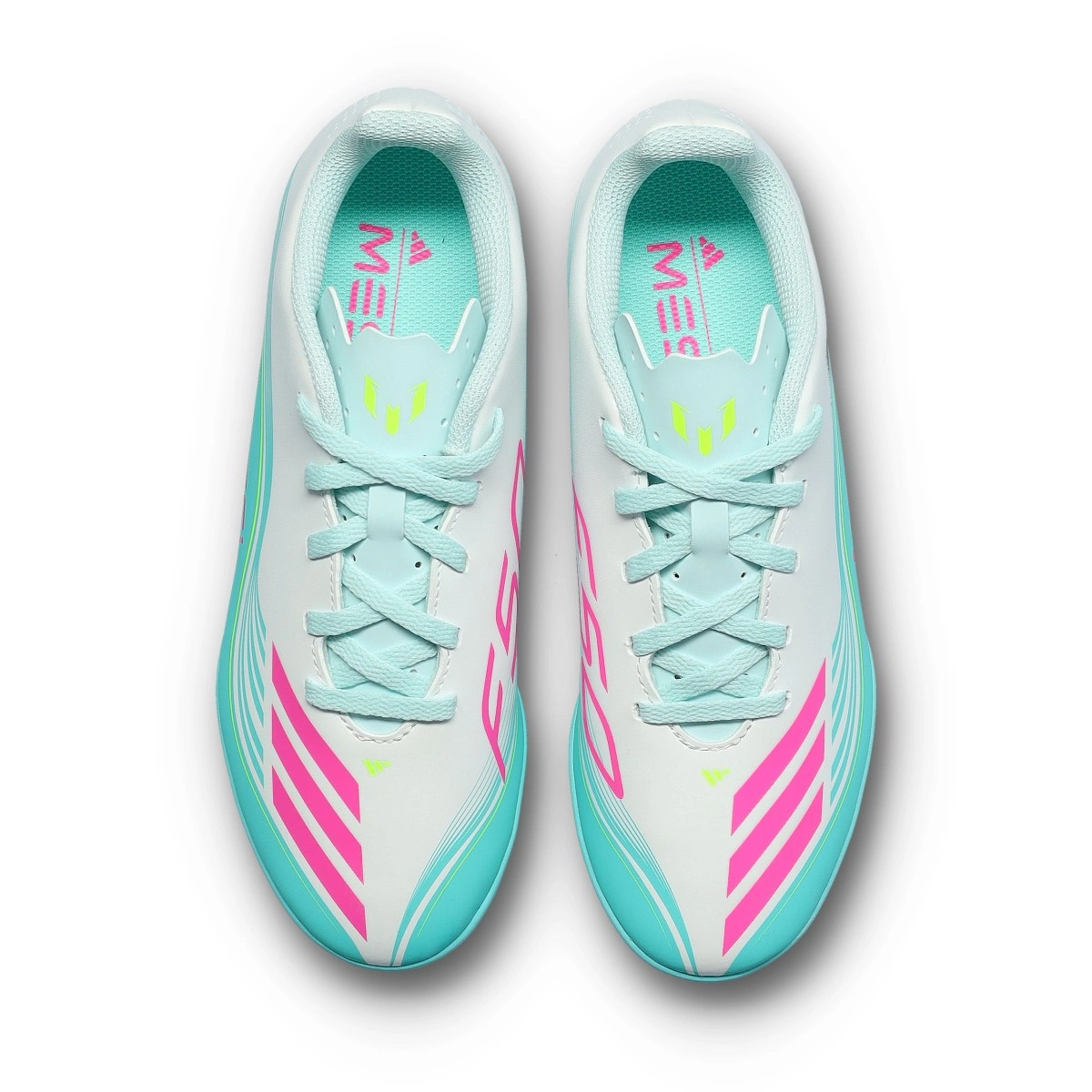 Couleur, rythme et vitesse. Ce pack spécial des adidas F50 s'inspire des Miami Vibes : des tons corail, turquoise et des détails néon qui rappellent l'été éternel, le football sans pression et le spectacle permanent. Une esthétique fraîche et accrocheuse qui s'accorde parfaitement avec le style joyeux et décisif de Lionel Messi.