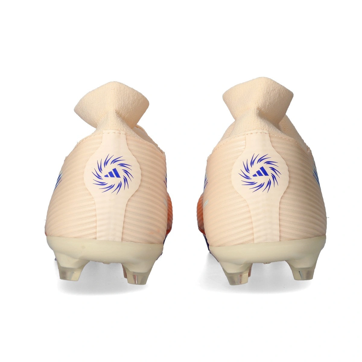 Chaussures F50 Sparkfusion League FG/AG Mid pour femmes de la marque adidas, couleur Bliss Orange-Lucid Blue-Beam Orange. Chaussures d'entrée de gamme pour terrains en gazon naturel et artificiel de deuxième génération.