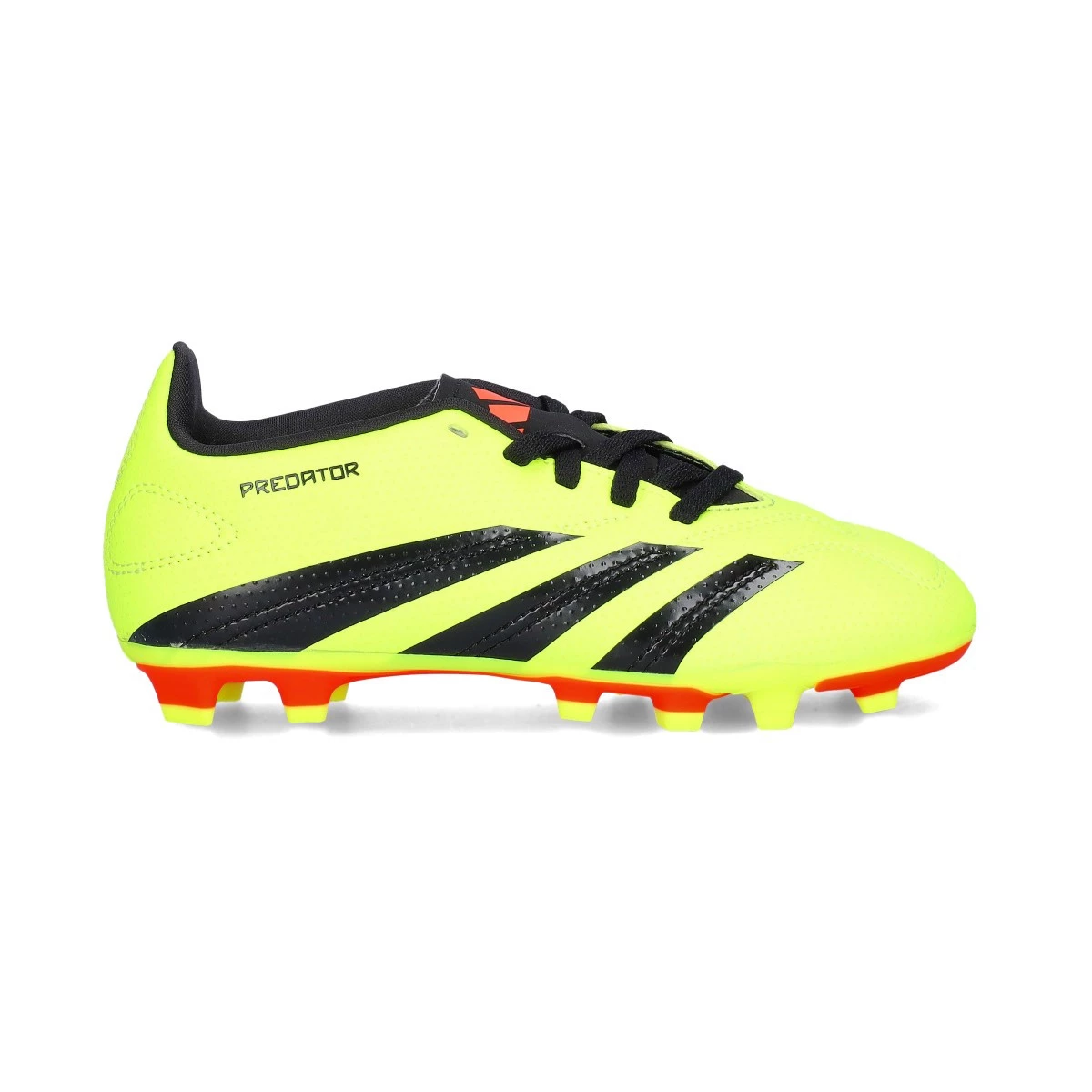 Chaussures de football adidas Predator Club L FxG pour enfants. Chaussures synthétiques à utiliser sur des terrains en gazon naturel secs ou humides. Chaussures bas de gamme en couleur Team Solar Yellow-Core Black-Solar Red.