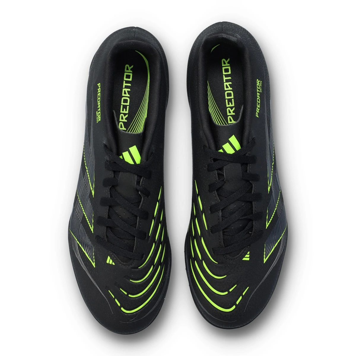 Chaussures de football adidas Predator Club L Turf. Modèle synthétique avec lacets, adapté aux terrains en terre ou moquette. Chaussures d’entrée de gamme en coloris Core Black-Carbon-Lucid Lemon.