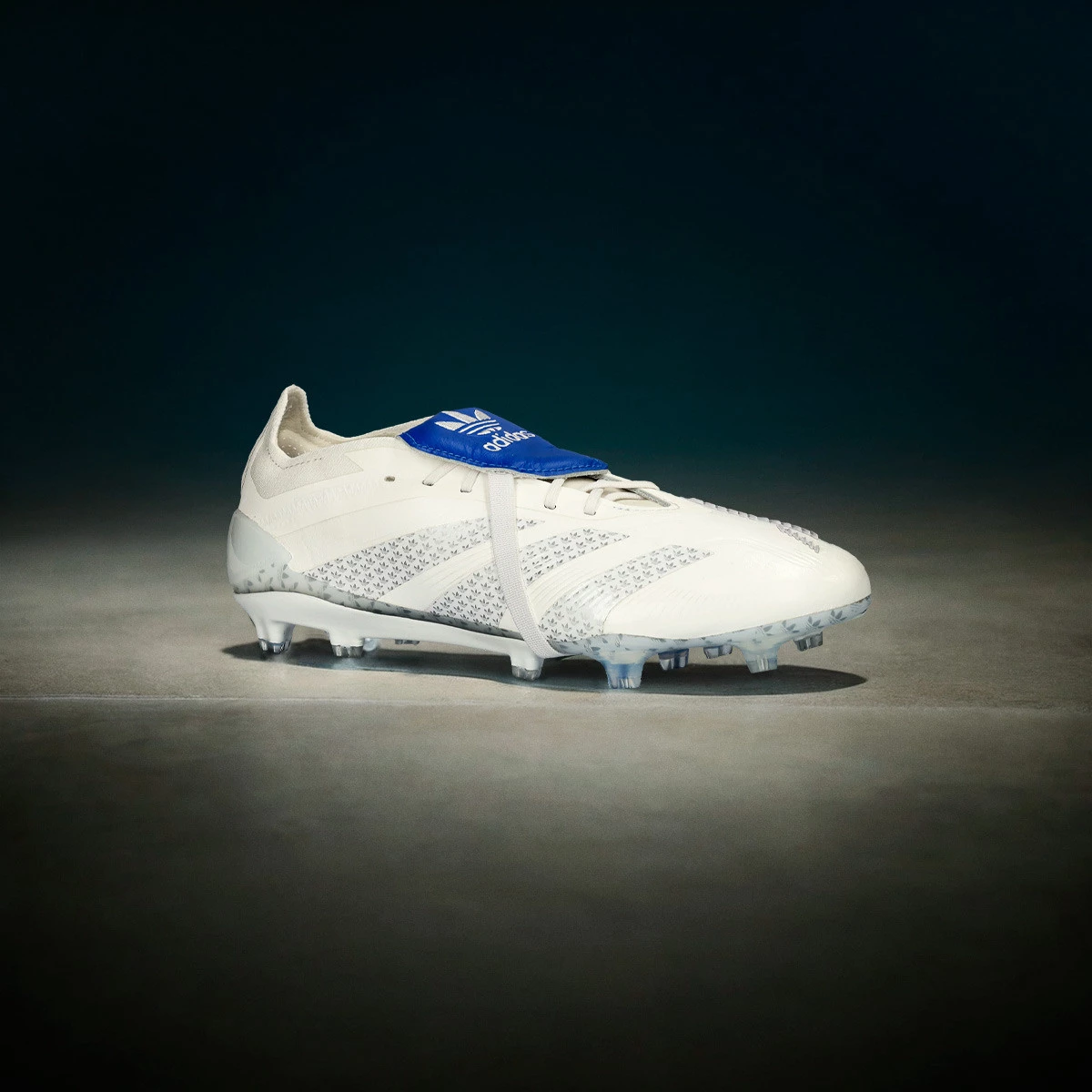 Chaussures de football adidas Predator Elite David Beckham FT FG pour adultes. Chaussures synthétiques avec lacets à utiliser sur des terrains en gazon naturel. Chaussures de haute gamme en couleur White-Blue.