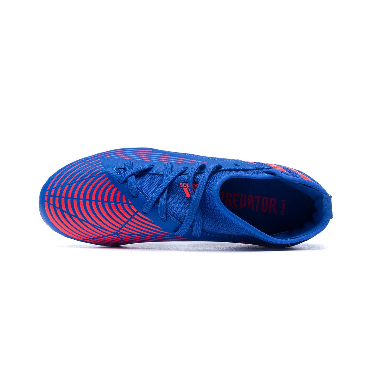 Chaussures de football adidas Predator Edge.3 FG pour enfant. Chaussures à porter en terrain naturel sec ou humide. Chaussures entrée de gamme couleur Blue-White-Turbo. Pour les joueurs de contrôle.