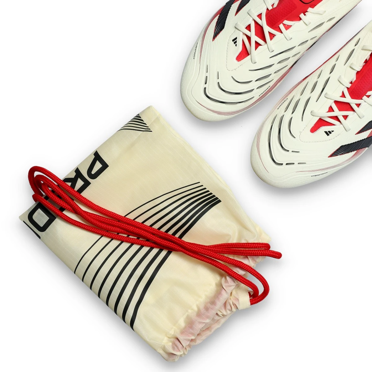 Chaussures Predator Elite L AG d'adidas en Off White-Core Black-Pure Ruby. Des chaussures haut de gamme pour les terrains en gazon artificiel.