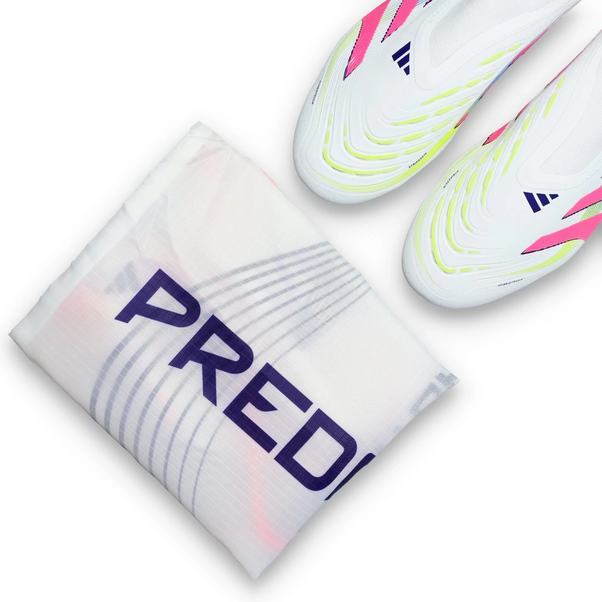 Chaussure Predator Elite LL FG de la marque adidas en couleur White-Lucid Pink-Lucid Lemon. Chaussures sans lacets pour terrains en gazon naturel.