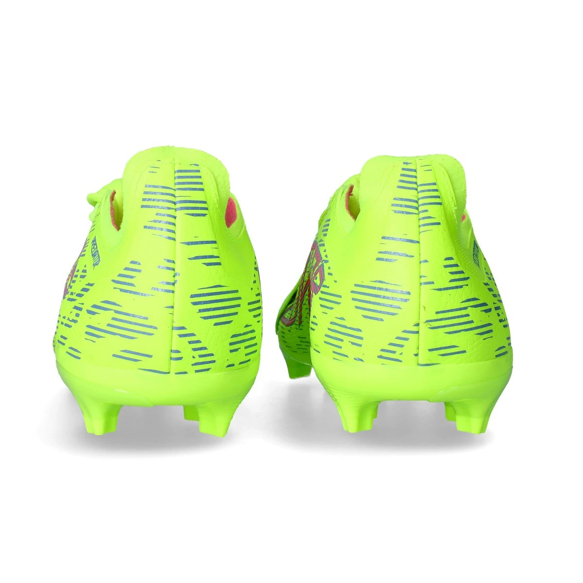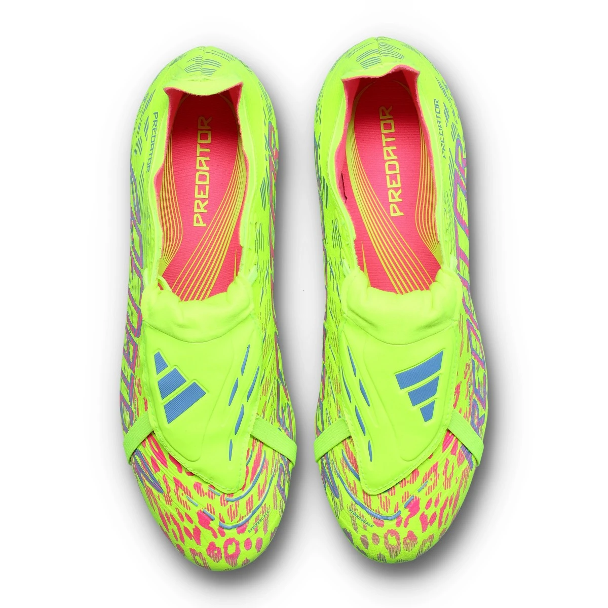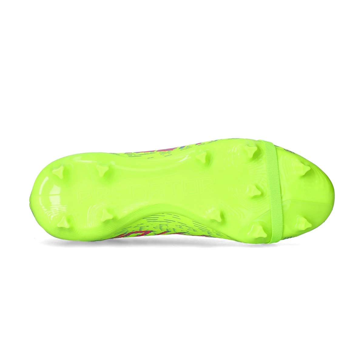 Chaussure Predator League FT FG/MG Mid adidas en Lucid Lemon-Blue Fusion-Lucid Pink. Une chaussure de gamme intermédiaire conçue pour les terrains en gazon naturel et artificiel de deuxième génération.