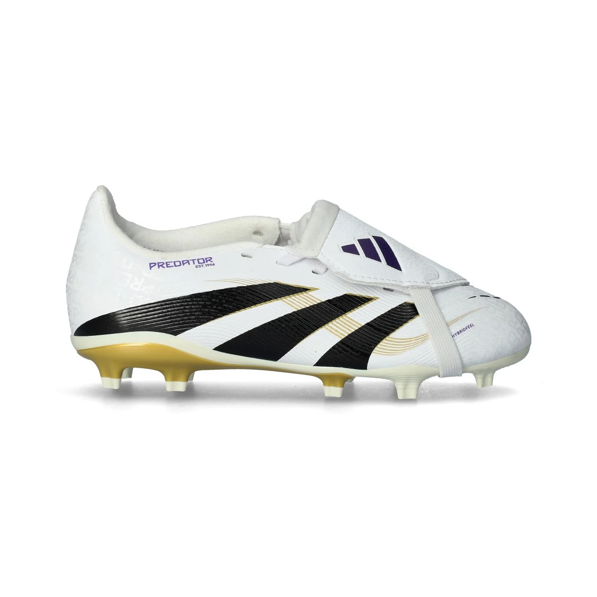 Matériau synthétique laminé actualisé pour plus de stabilité et de confort, doté de la technologie HybridTouch 2.0 avec inserts Strikeskin et languette pliable avec sangle élastique.