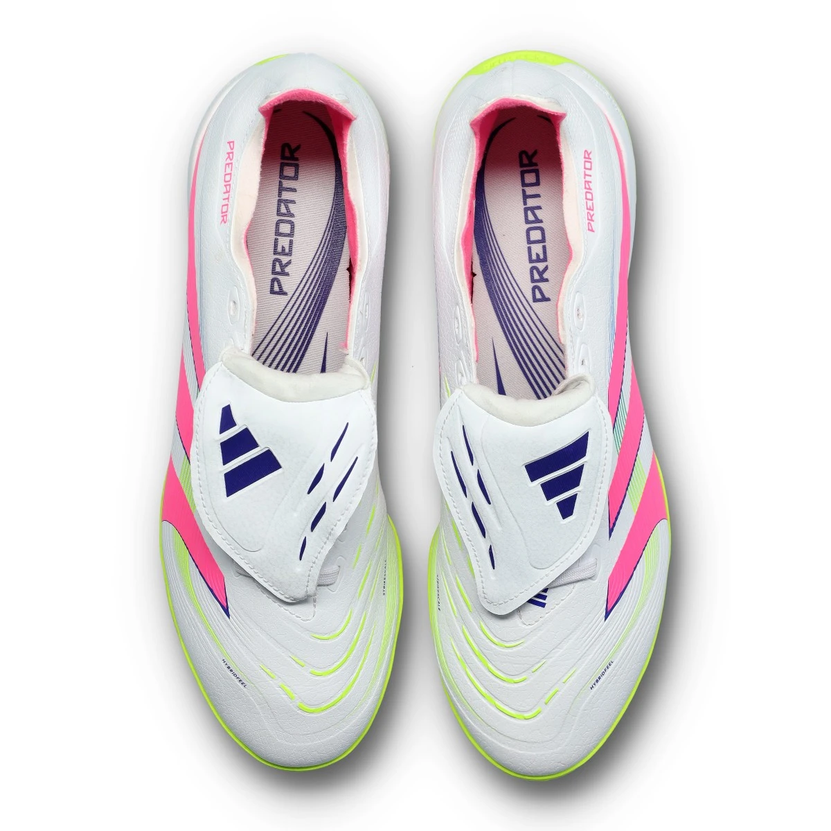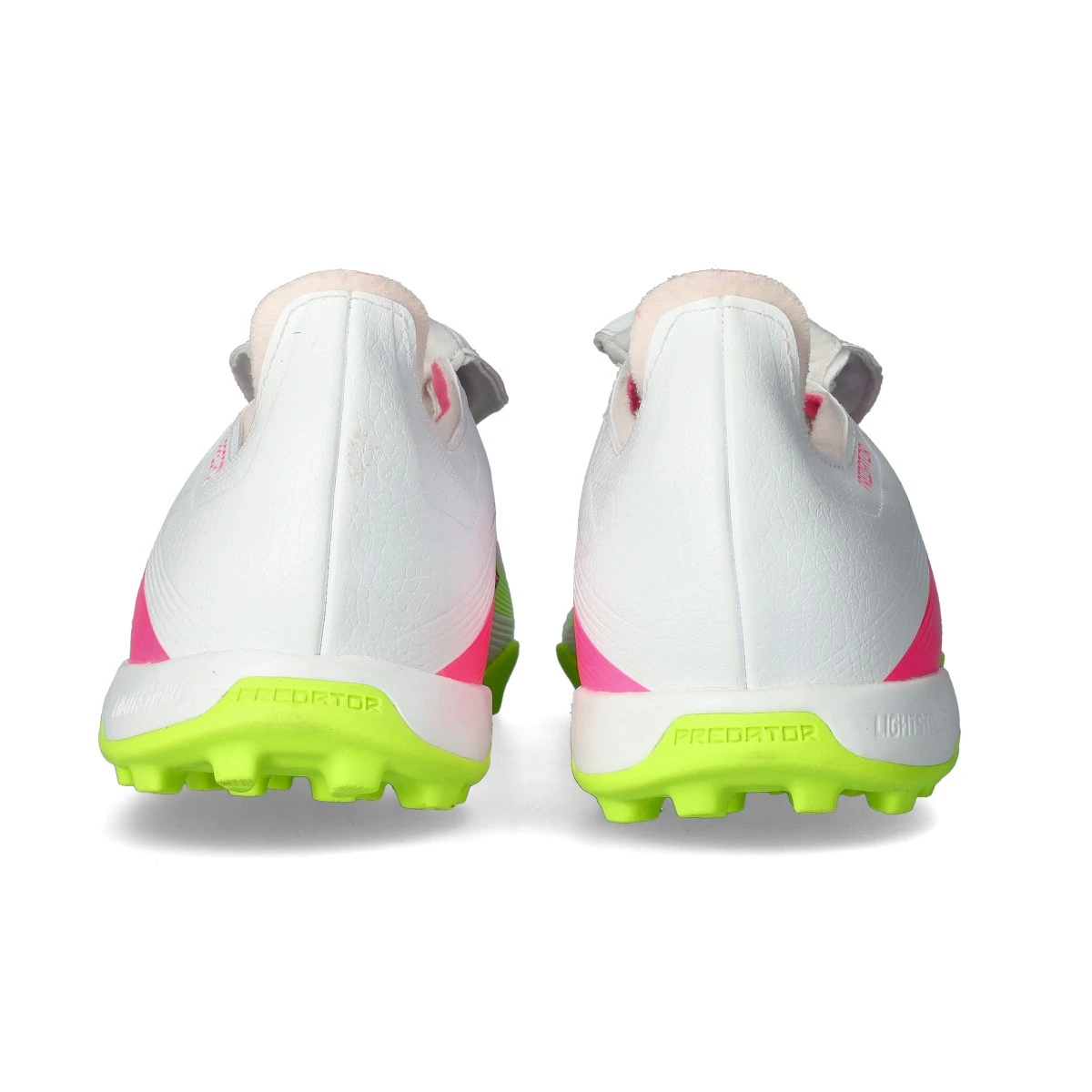 Chaussure Predator League FT Turf de la marque adidas en couleur Ftwr White-Lucid Pink-Lucid Lemon. Chaussure d'entrée de gamme pour terrains en gazon synthétique ou moquette.