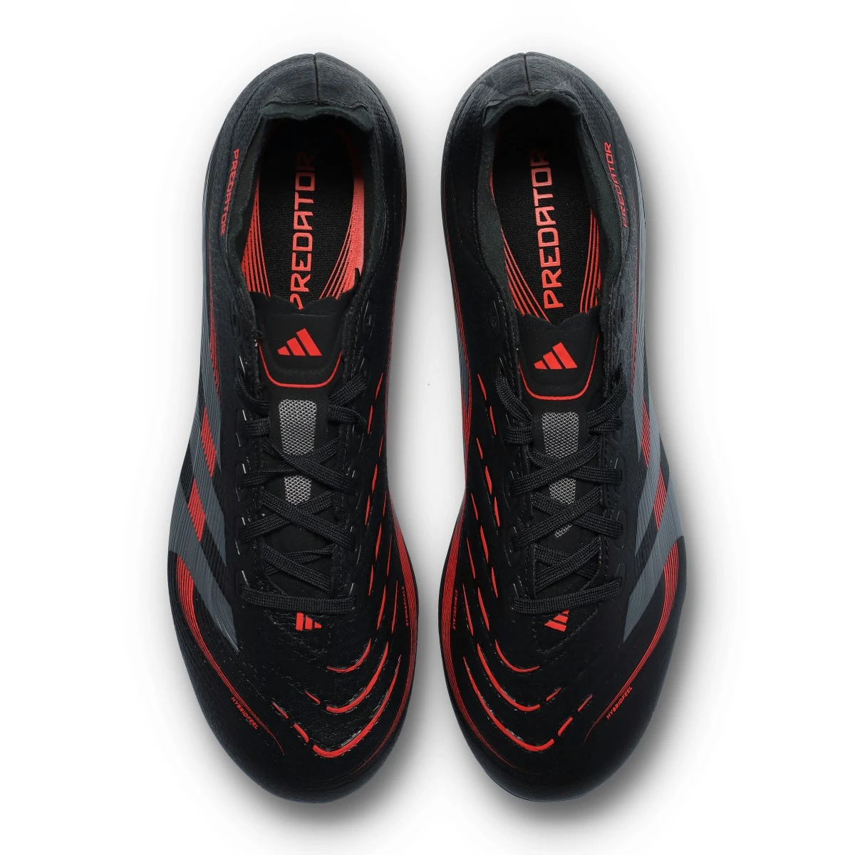 Chaussures adidas Predator League L FG/MG pour adultes. La bonne chaussure pour te démarquer et donner de la précision à tes passes et à tes tirs lors de tes matchs sur gazon naturel sec. Predator League en coloris Core Black-Grey Four-Lucid Red.