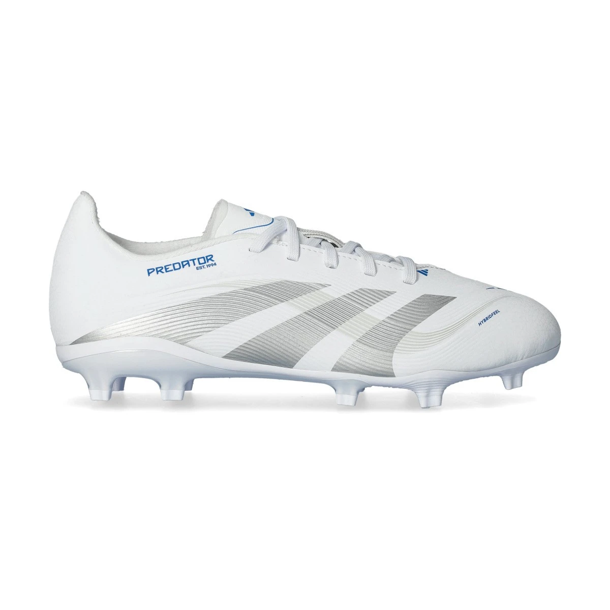 Chaussures adidas Predator League L FG/MG pour enfants. La bonne chaussure pour te démarquer et donner de la précision à tes passes et à tes tirs lors de tes matchs sur gazon naturel sec. La Predator League est disponible en White-Silver Met-Bright Royal.