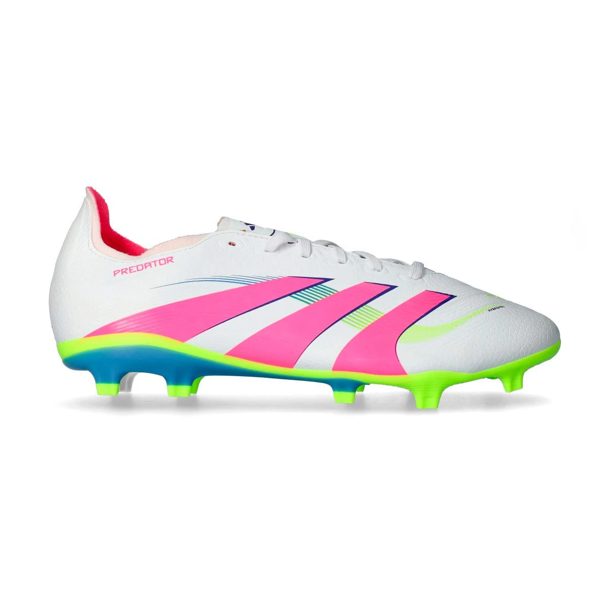 Chaussures adidas Predator League L FG/MG. La bonne chaussure pour te démarquer et donner de la précision à tes passes et à tes tirs lors de tes matchs sur gazon naturel sec.  La Predator League est disponible en White-Lucid Pink-Lucid Lemon.