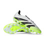 Chaussure Predator League L MG de la marque adidas en couleur Blanc-Argent Métallique-Bleu Royal Éclatant. Chaussure d’entrée de gamme conçue pour les terrains en gazon synthétique.