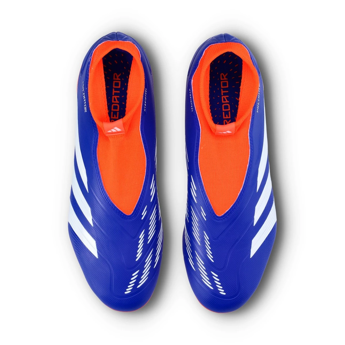 Chaussures de foot adidas Predator League LL FG. Chaussures synthétiques sans lacets à utiliser sur terrains en gazon naturel. Chaussures haut de gamme en couleur Lucid Blue-White-Solar Red.