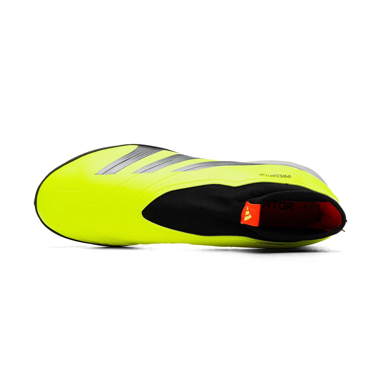 Chaussures de football adidas Predator League LL Turf. Chaussures synthétiques à lacets pour utilisation sur terrains en terre ou en moquette. Chaussures de milieu de gamme en couleur Team Solar Yellow-Core Black-Ftwr White.