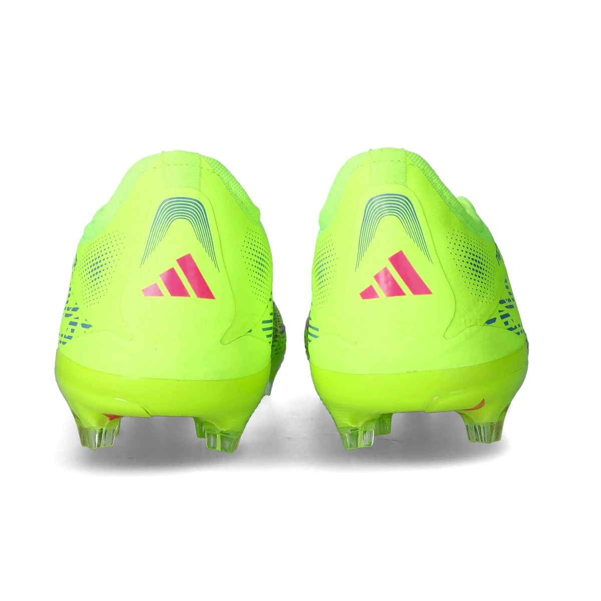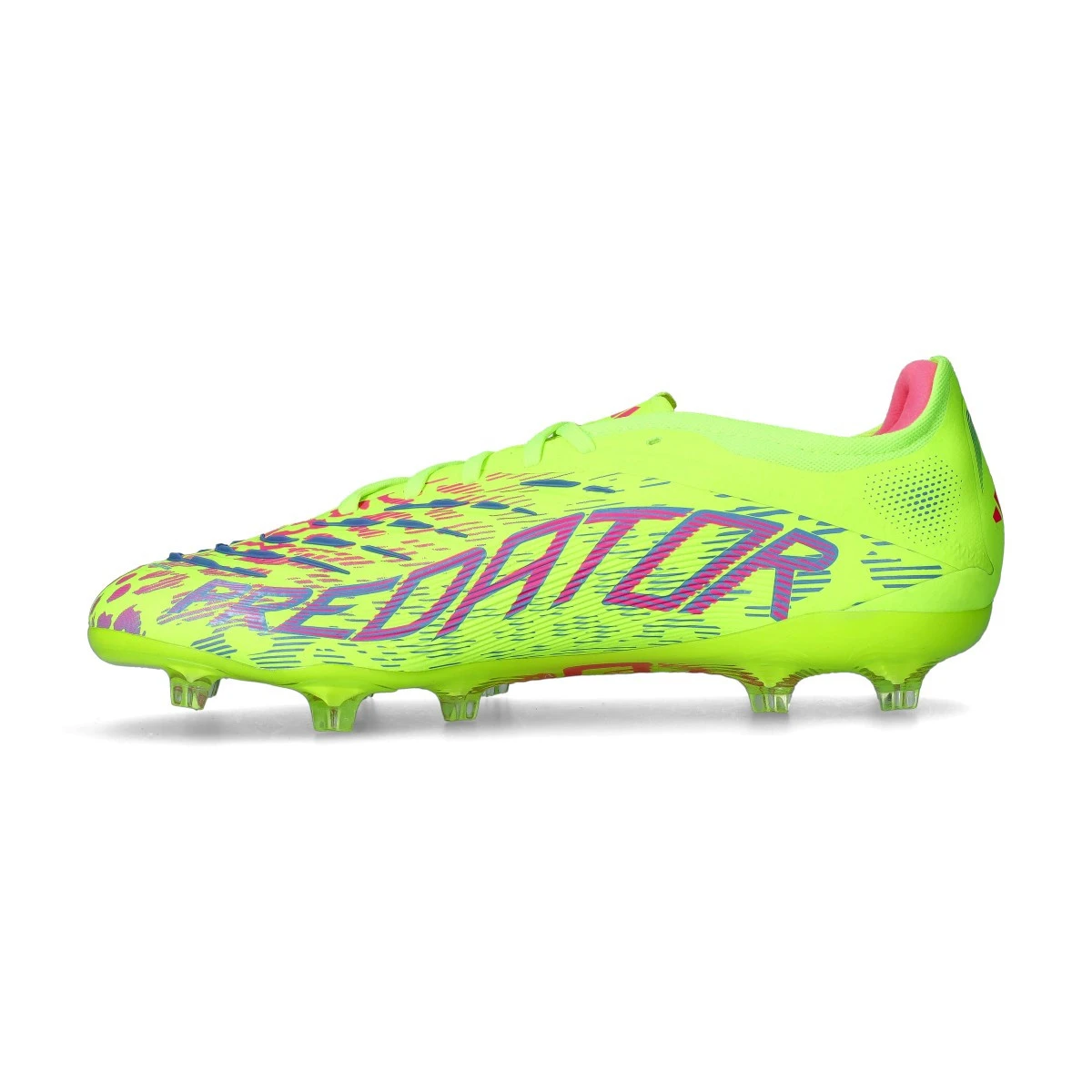 Chaussure Predator Pro L FG pour les terrains en gazon naturel sec. Chaussure de milieu de gamme en couleur Lucid Lemon-Blue fusion-Lucid Pink.