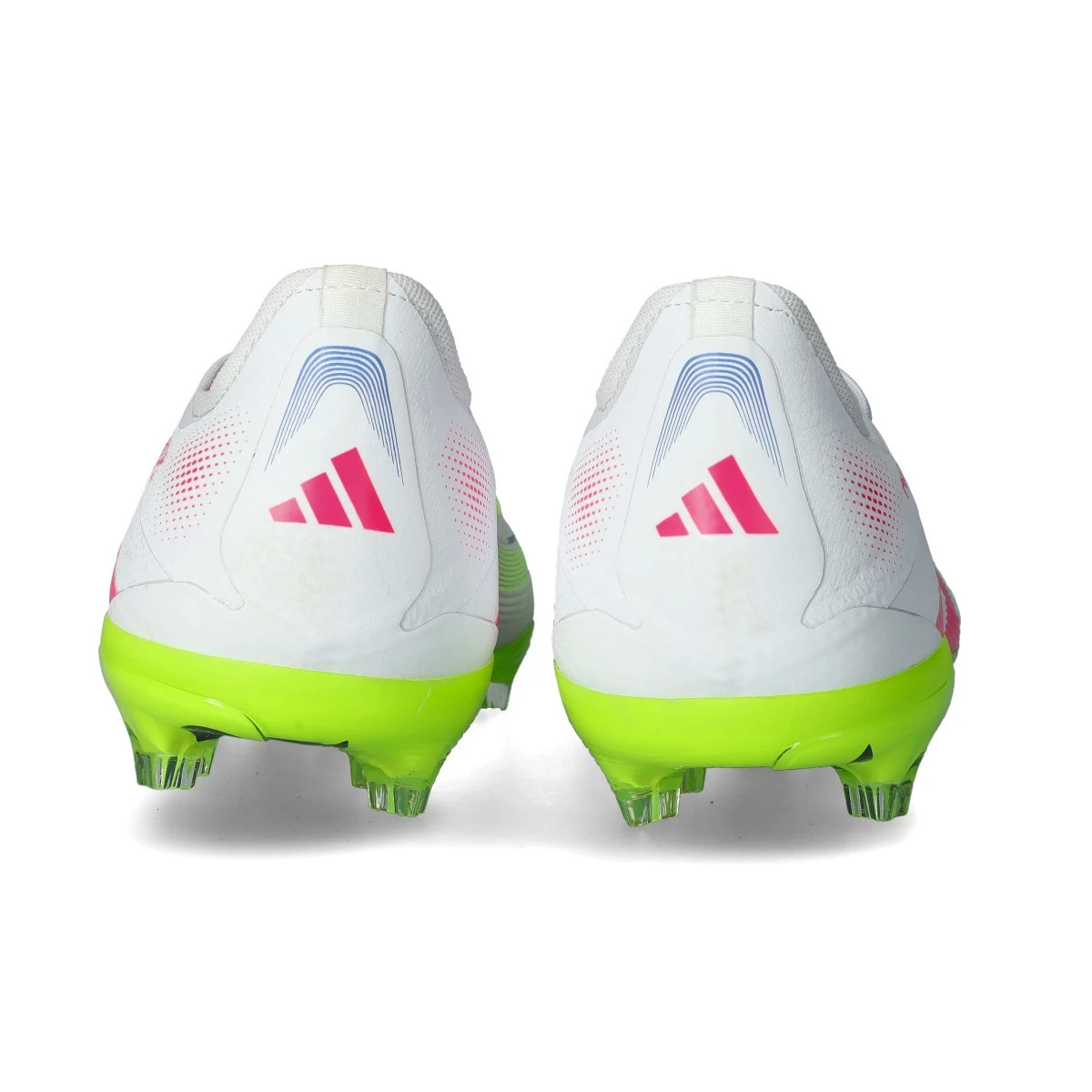 Chaussure Predator Pro L FG pour les terrains en gazon naturel sec. Chaussure de milieu de gamme en coloris White-Lucid Pink-Lucid Lemon.