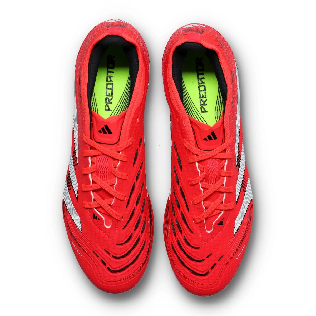 Chaussures de football adidas Predator Pro MG. Chaussures filetées, avec chaussettes, pour utilisation sur terrains en gazon artificiel. Chaussures de la gamme de base en Lucid Red-Ftwr White-Core Black. Pour les joueurs de contrôle.