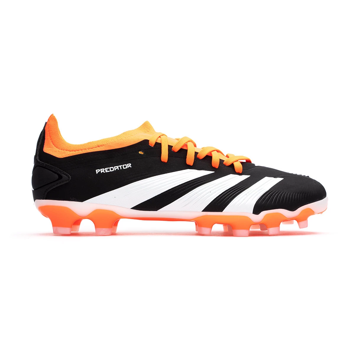 Chaussures de football adidas Predator Pro MG. Chaussures en fil, avec chaussettes, pour utilisation sur gazon naturel, gazon artificiel ou terrains en terre. Chaussures bas de gamme de couleur Core Black-Ftwr White-Solar Red. Pour les joueurs de contrôle.