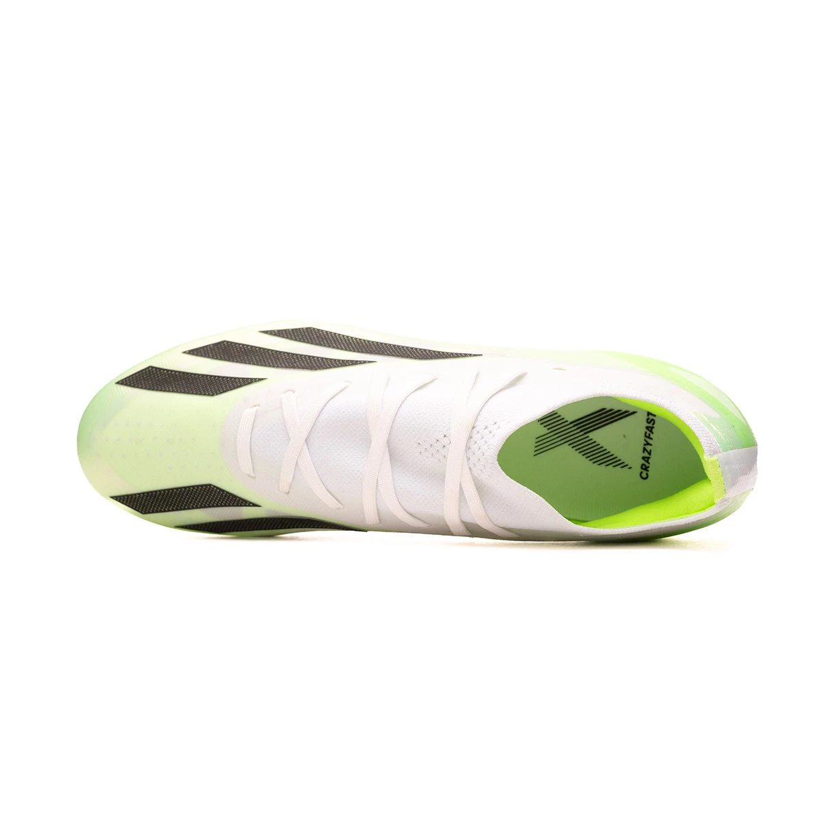 Chaussure de football Adidas X Crazyfast.2 FG pour adulte. Chaussures à lacets à utiliser sur les terrains en gazon naturel secs ou humides. Chaussures milieu de gamme de couleur Ftwr white-Core black-Lucid lemon