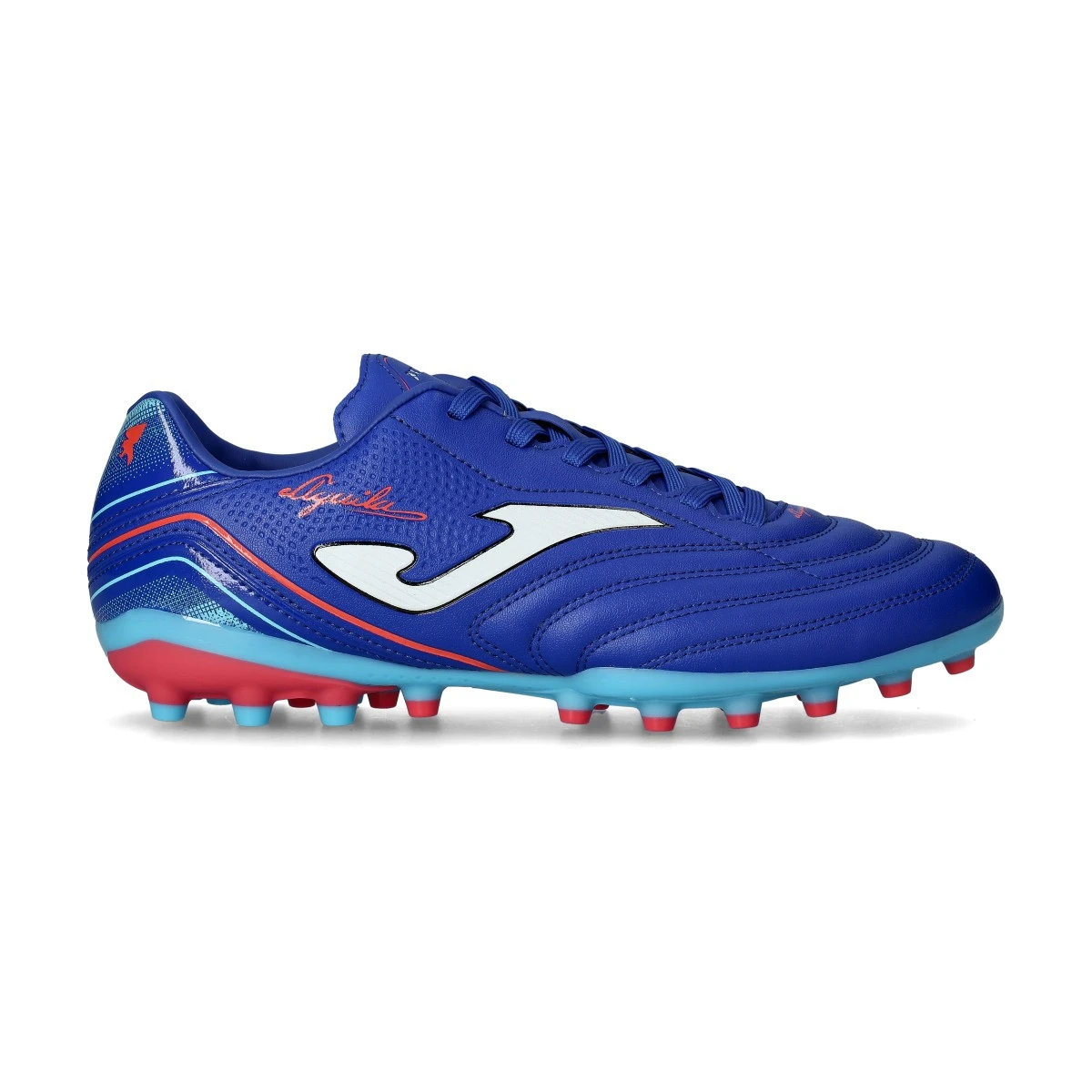 Chaussure Joma Aguila AG. Chaussure en cuir synthétique pour les terrains en gazon artificiel. Chaussure de milieu de gamme en bleu.
