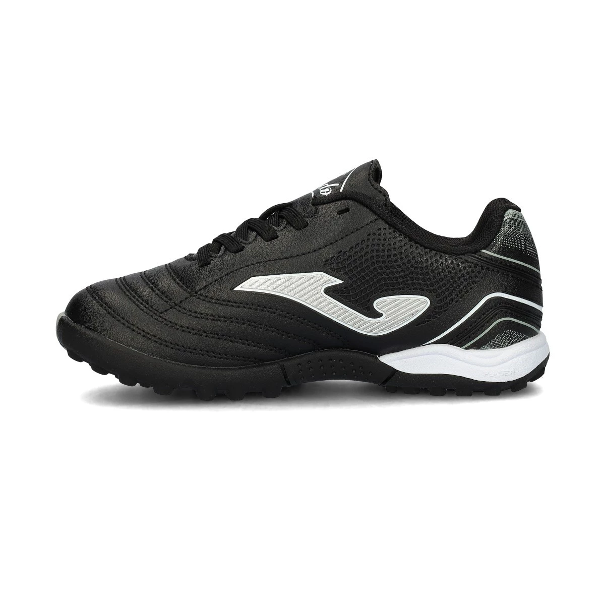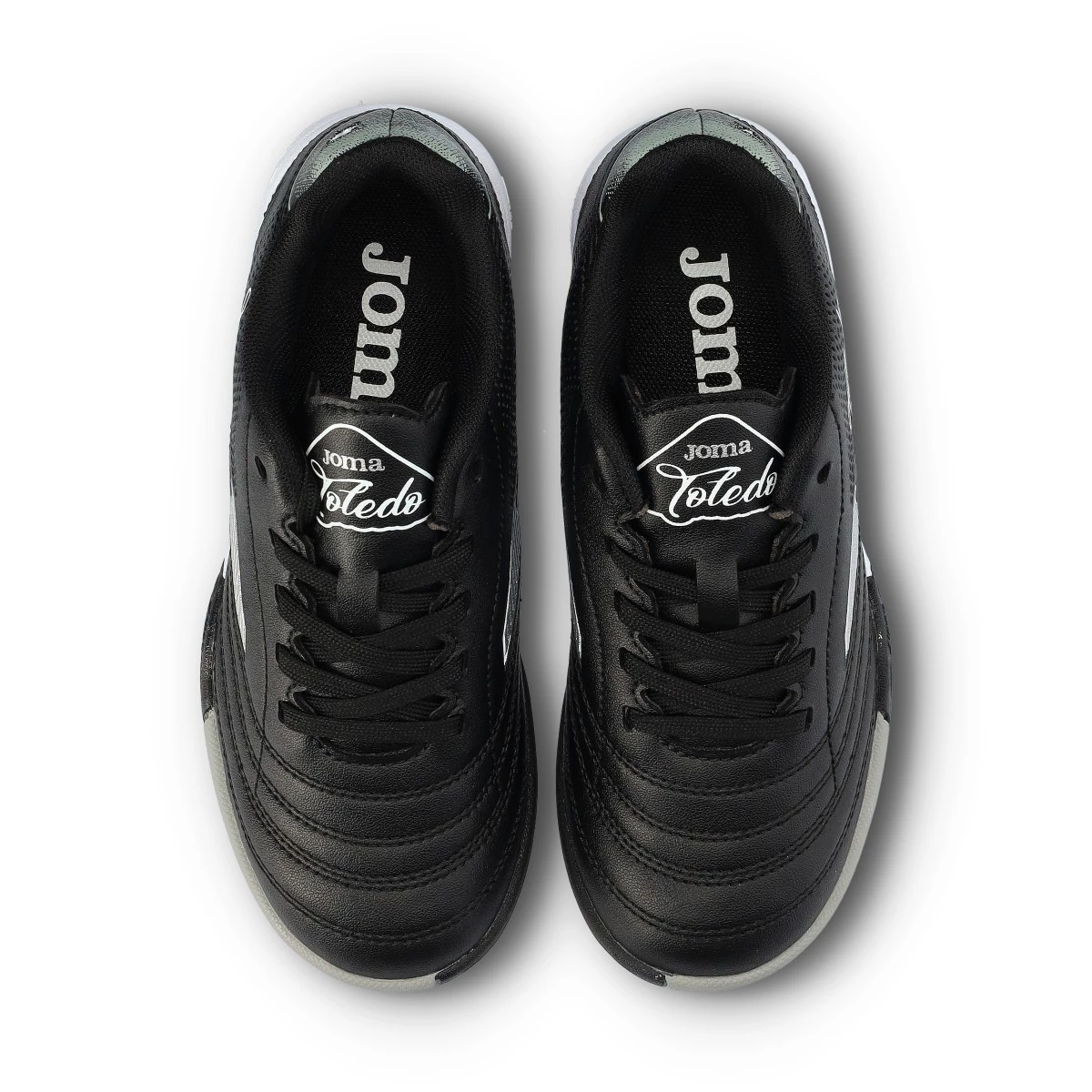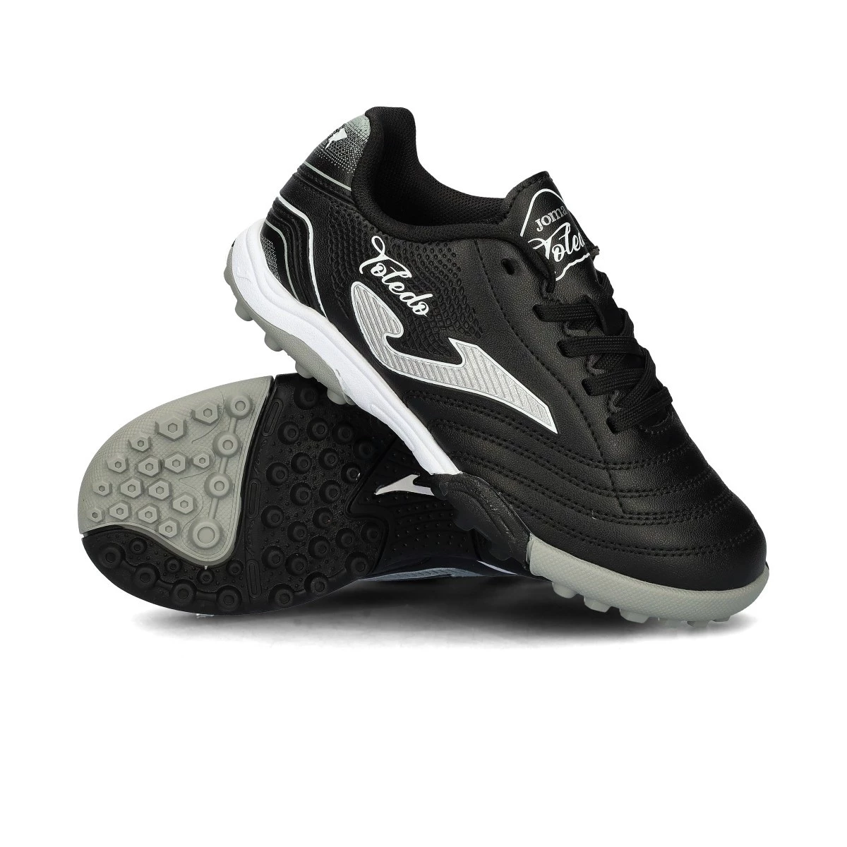 Nouvelle chaussure Joma Jr Toledo Turf pour enfants, en couleur Noir-Blanc.