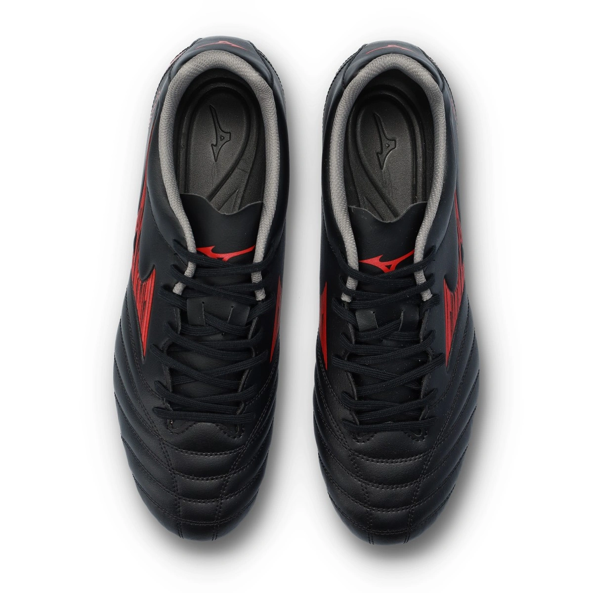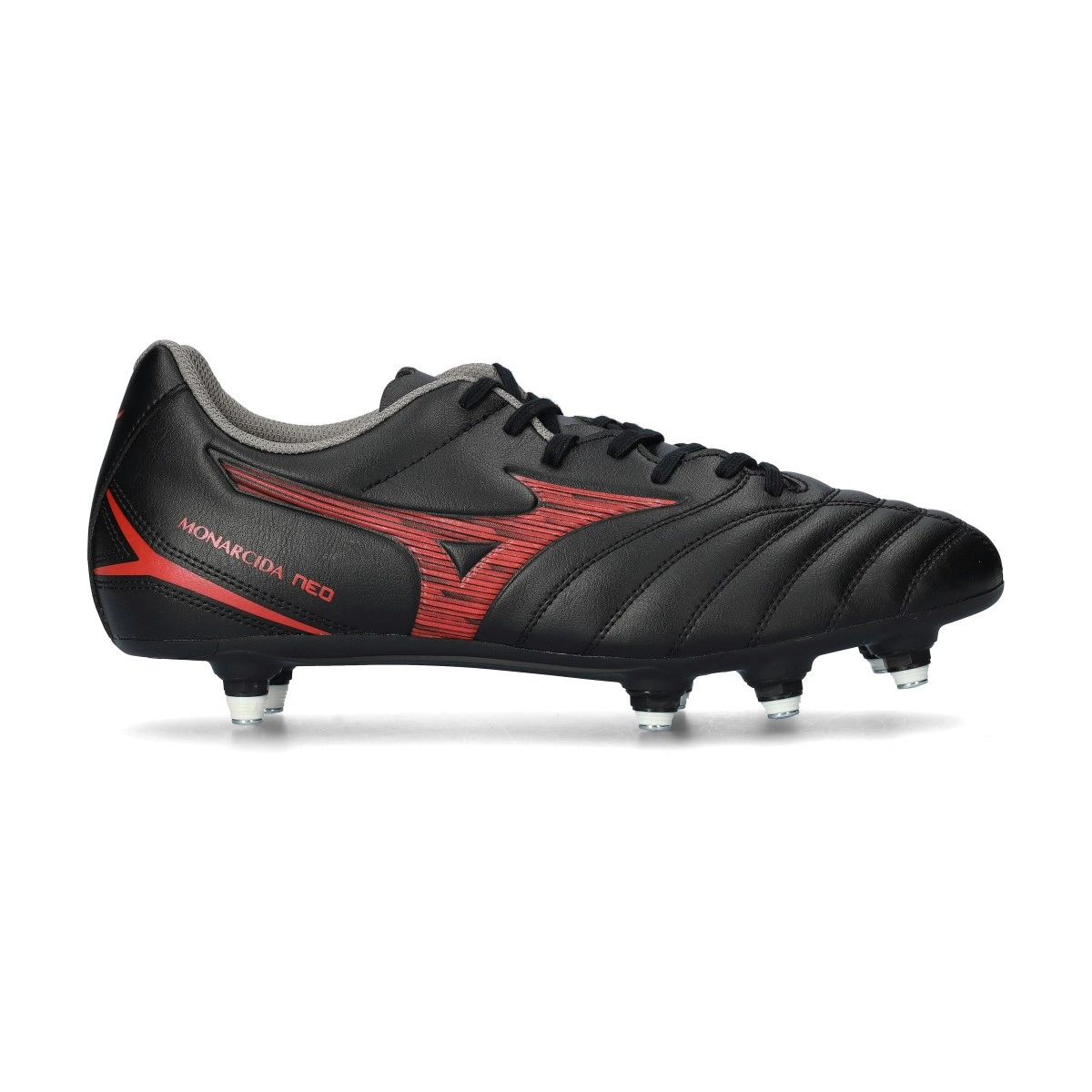 Chaussures de football Monarcida Neo III Select SG en couleur Black-Red. Chaussures d’entrée de gamme conçues pour les terrains en gazon naturel humide.