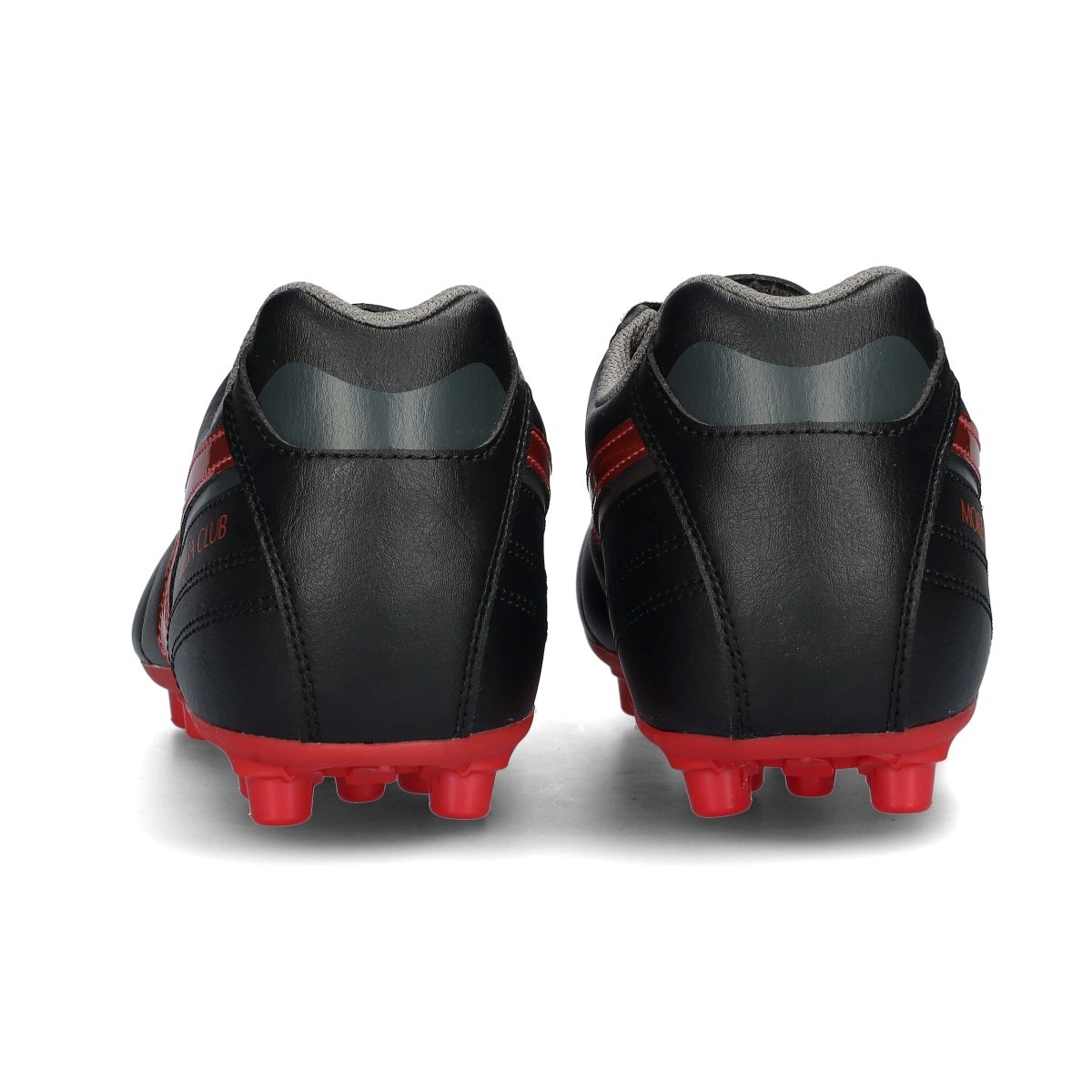 Chaussure de football Mizuno Morelia II Club AG. Modèle adulte, coloris Black-Red-Black, gamme d’entrée de gamme pour terrains en gazon artificiel.