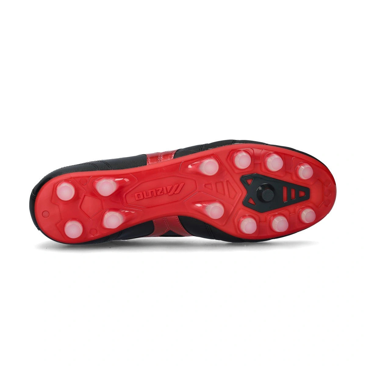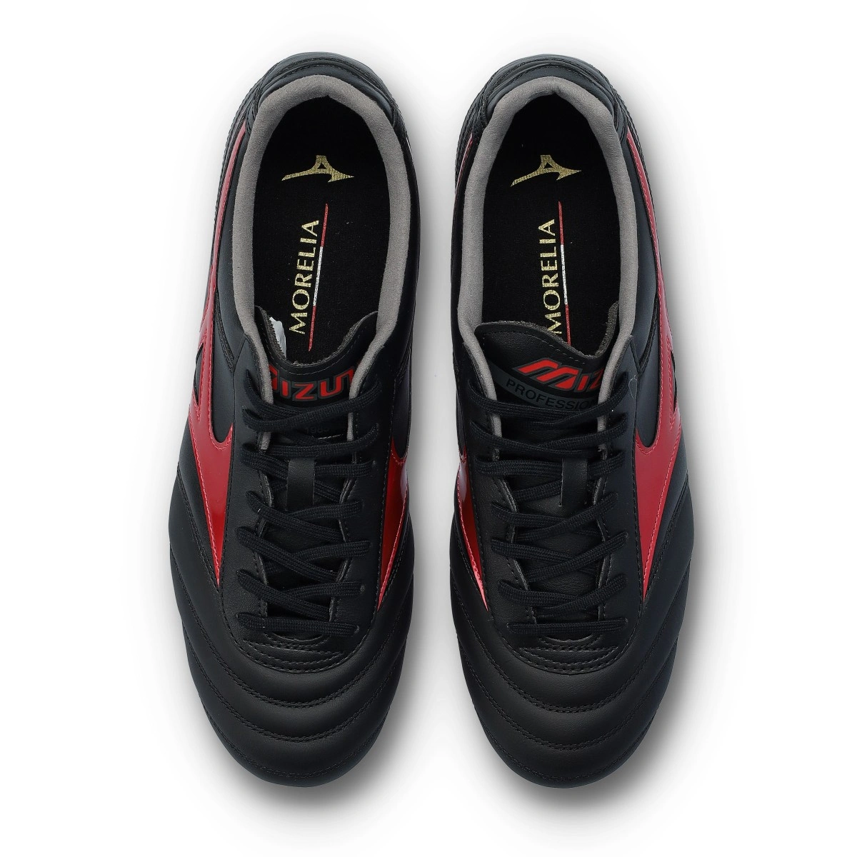 Chaussures de football Mizuno Morelia II Pro FG. Pour terrains en gazon naturel, coloris Black-Red-Black.