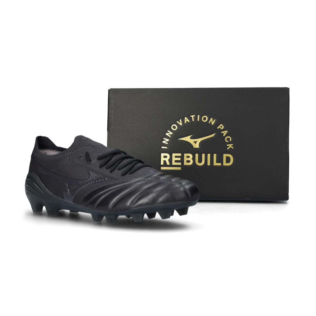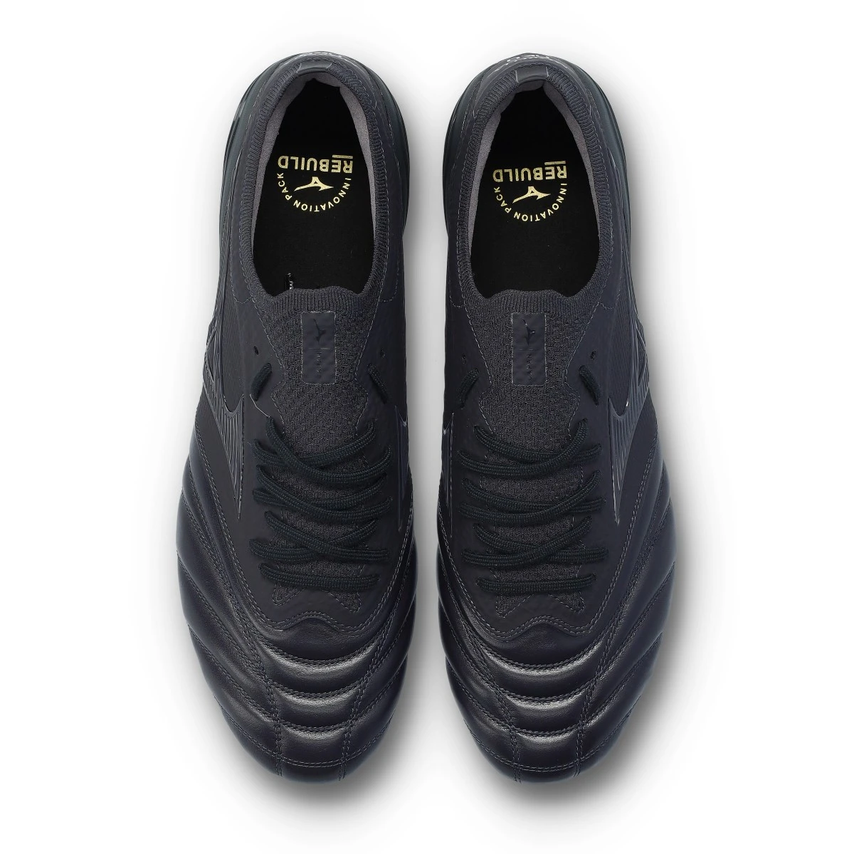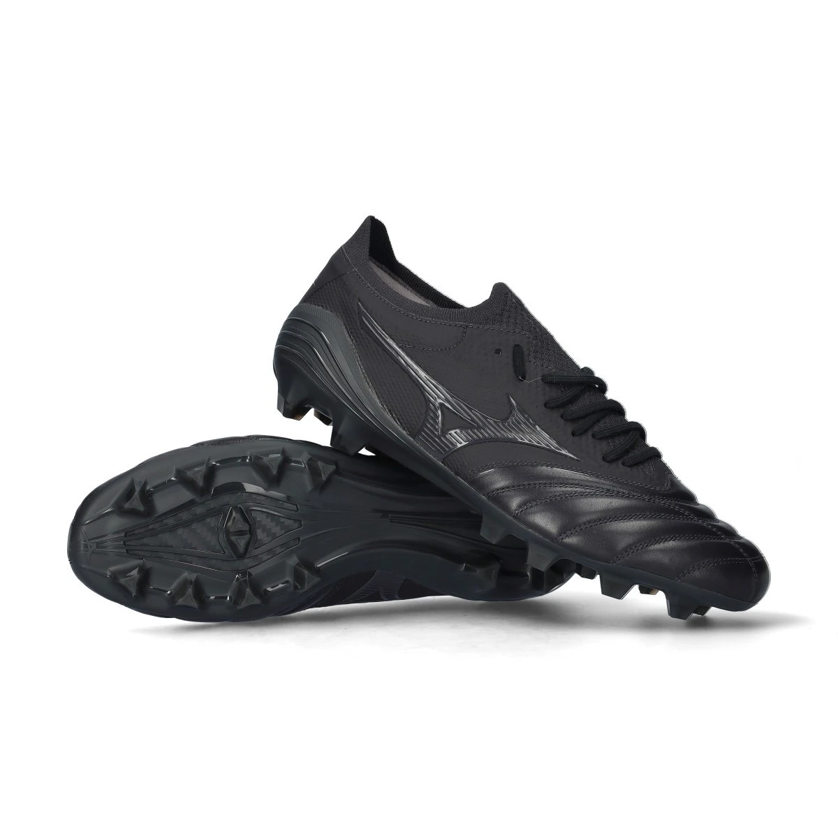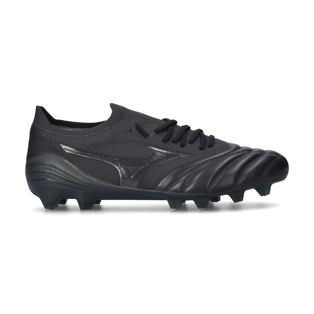 Chaussures de football Mizuno Morelia Neo IV Japan FG en cuir de kangourou pour gazon naturel, coloris Obsidian-Obsidian-Obsidian.