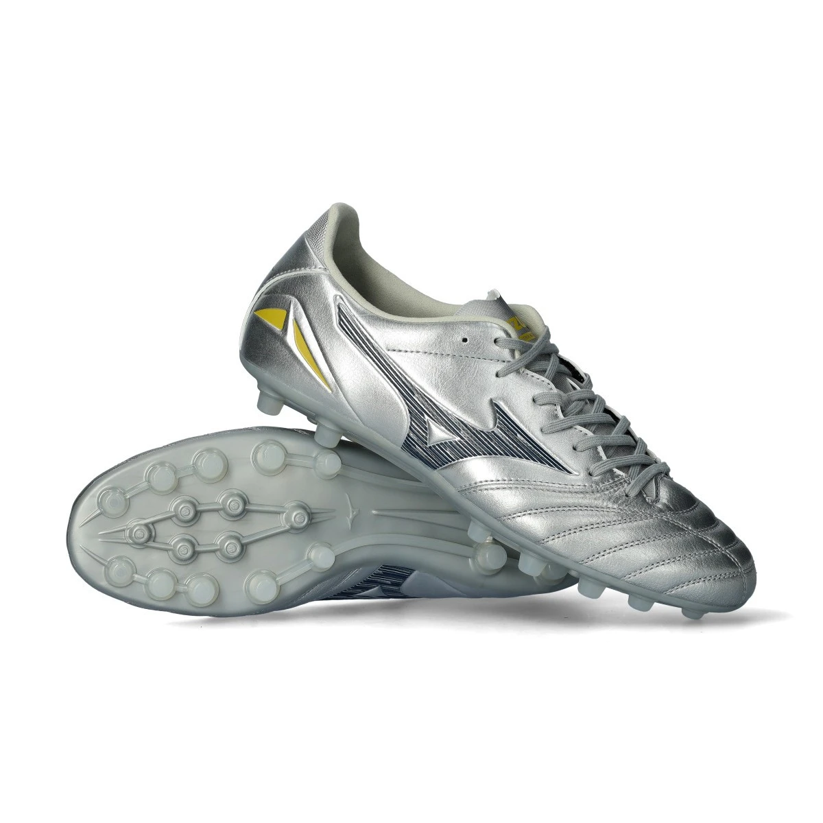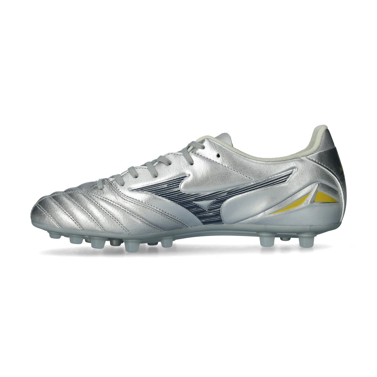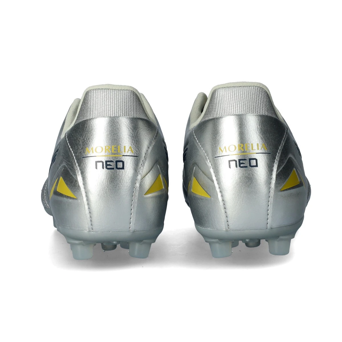 Chaussure Mizuno Morelia Neo IV Pro AG pour terrains en gazon artificiel de couleur Galaxy Silver-Cool Gray.