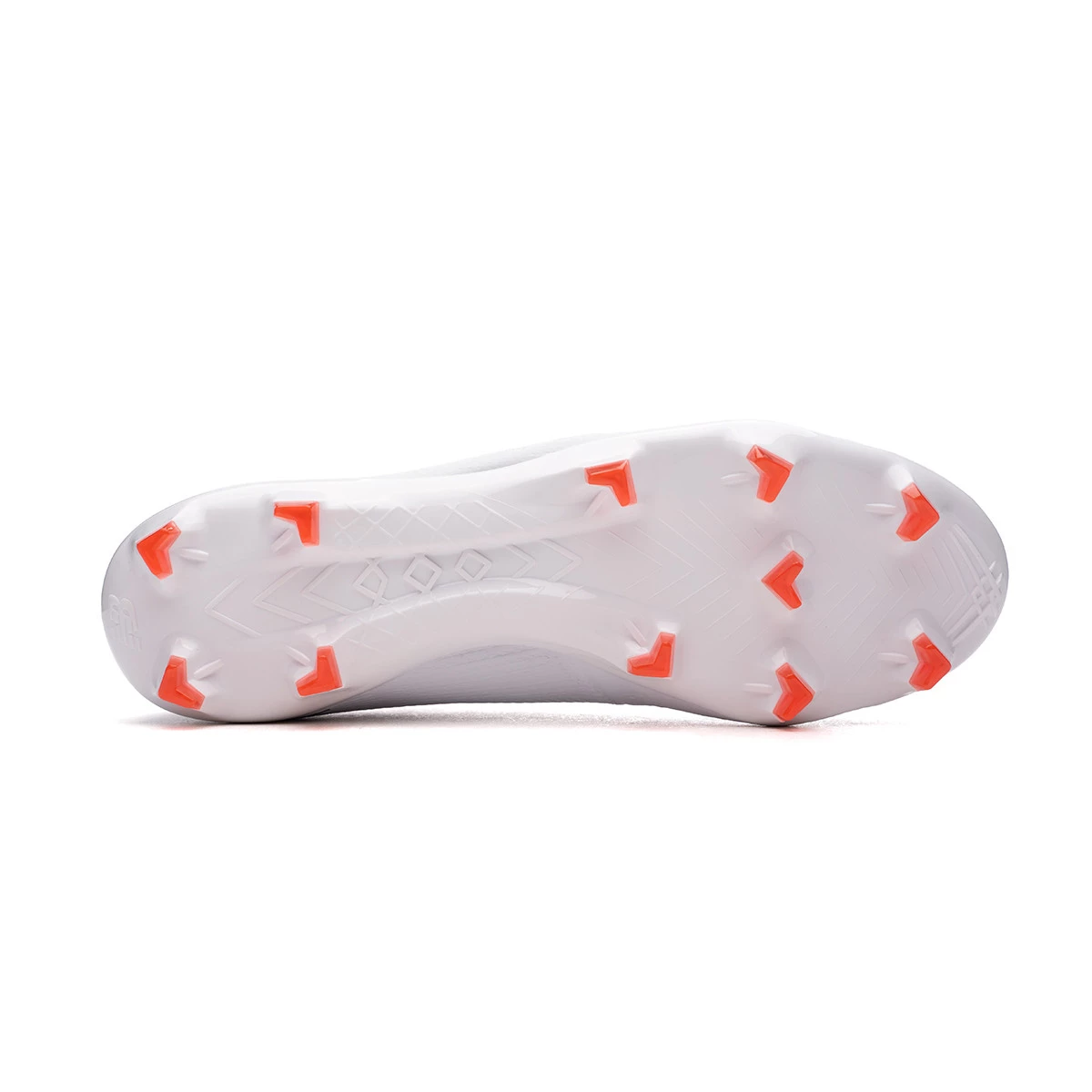 Chaussures de football New Balance Furon Destroy FG V7+ en White. Chaussures synthétiques avec lacets à porter sur les terrains en gazon naturel.