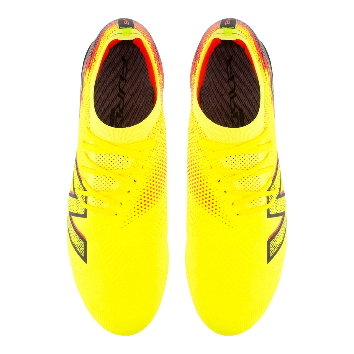 Chaussures de football New Balance Furon Elite SG pour adulte en couleur Punch-Yellow. Chaussures synthétiques avec lacets pour terrains en gazon naturel humide ou légèrement mouillé.