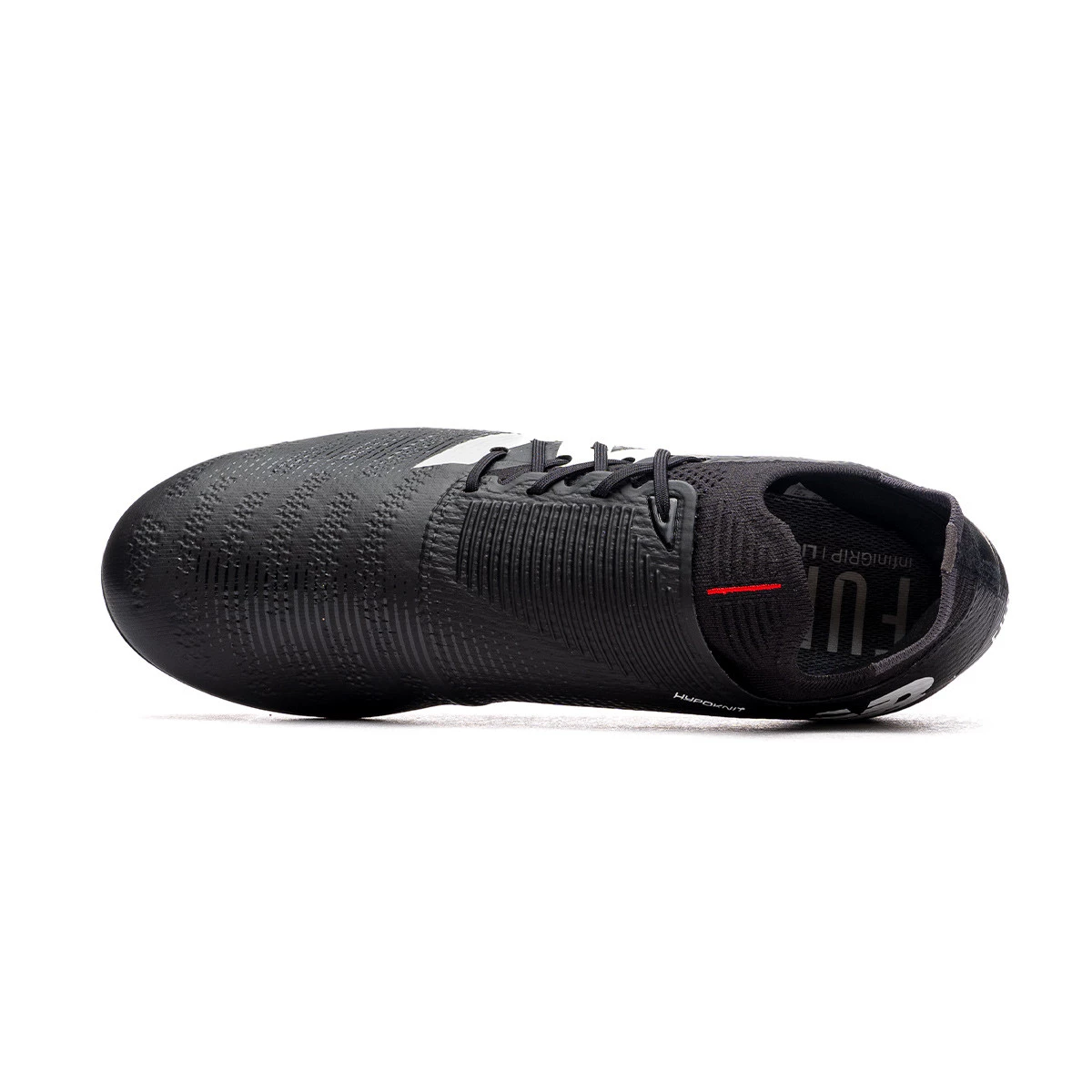 Chaussures de football New Balance Furon Pro AG V7+ en couleur Black. Chaussures synthétiques avec lacets à porter sur les terrains en gazon artificiel.
