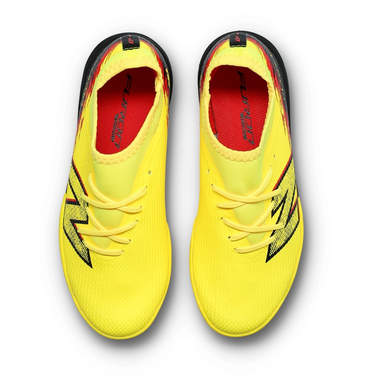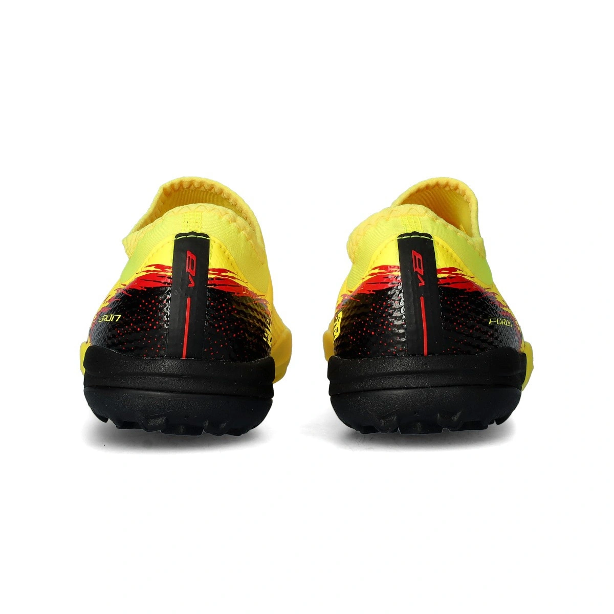 Chaussures de football Furon Team Turf pour enfant. À utiliser sur terrain en moquette ou en gazon artificiel. Chaussures d'entrée de gamme en coloris Punch-Yellow pour les joueurs rapides.