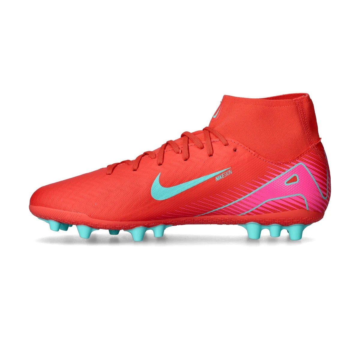 Chaussures Nike Air Zoom Mercurial Superfly 10 AG Academy.  Chaussures filetées, à utiliser sur des terrains en gazon artificiel ou en moquette. Bottes de la gamme de base en couleur Ember Glow-Aurora Green.
