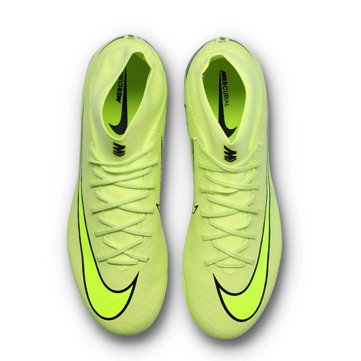 Nike Air Zoom Mercurial Superfly 10 AG Academy Boot. Bottes à lacets pour une utilisation sur des terrains synthétiques ou en moquette. Bottes d'entrée de gamme dans le coloris Limelight-Volt-Hyper Crimson.