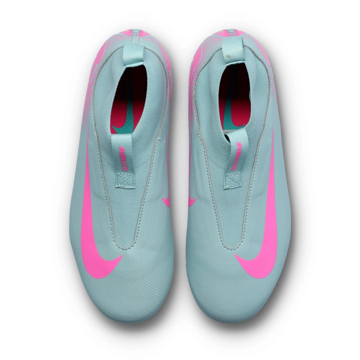 Chaussures NikeMercurial Air Zoom Superfly 10 Academy AG pour enfants. Chaussures filetées, à utiliser sur les terrains en gazon artificiel. Chaussures de la gamme de base en Ocean Cube-Pink Blast.
