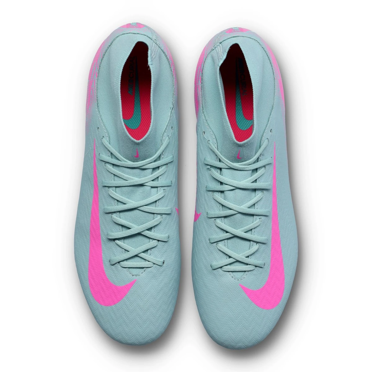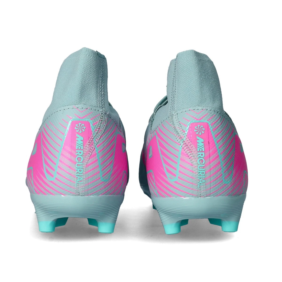 Nike Zoom Mercurial Superfly 10 Academy FG/MG. Chaussures filetées, à utiliser sur des terrains en gazon artificiel ou naturel. Chaussures de la gamme de base en Ocean Cube-Pink Blast.