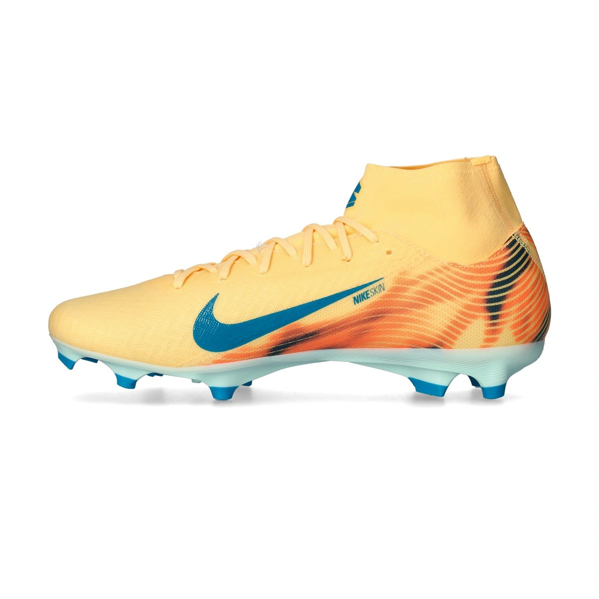 Chaussure de football Nike Air Zoom Mercurial Superfly 10 Academy KM FG/MG. Chaussure à crampons à utiliser sur gazon artificiel ou naturel. Chaussure de gamme de base dans le coloris Melon Tint-Neo Turq-Igloo.