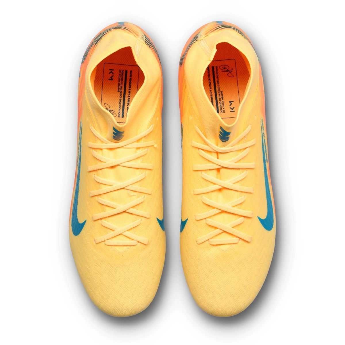 Conçue pour la vitesse pure de Kylian Mbappé, les nouvelles chaussures de la star française se déclinent dans un coloris orange vibrant, déjà présent dans les éditions précédentes. Avec un design léger et explosif, ce pack célèbre la nouvelle ère de Mbappé au Real Madrid, combinant technologie haute performance avec des détails exclusifs : son logo personnel, des références à la France et au club blanc. Conçue pour ceux qui veulent faire la différence. Procurez-vous les vôtres maintenant!