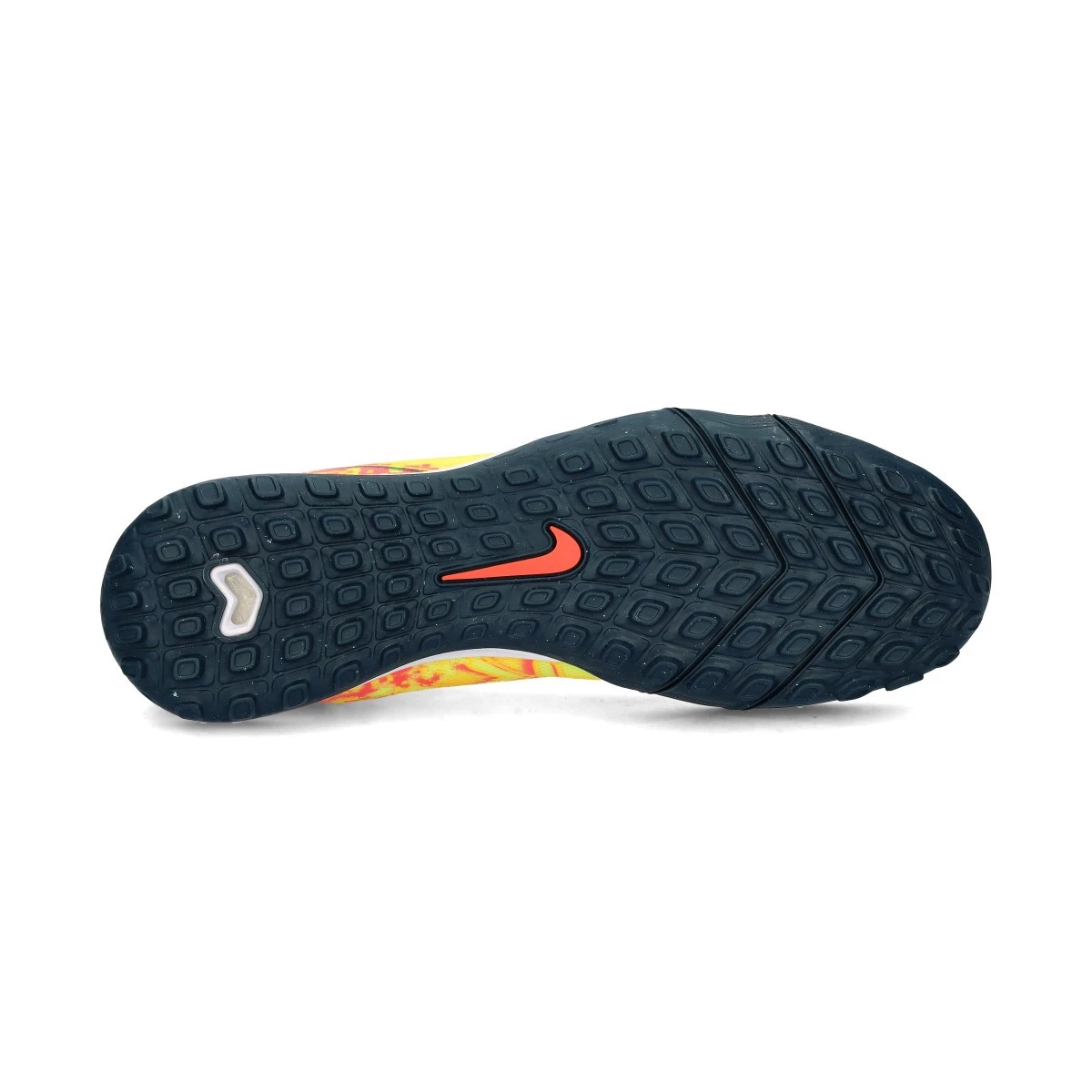Chaussure de football Nike Zoom Mercurial Superfly 10 Academy Turf. Tige synthétique avec doublure en chaussette pour une utilisation sur moquette, gazon artificiel ou terrains en béton. Chaussure de la gamme de base en couleur Laser Orange-Armory Navy.