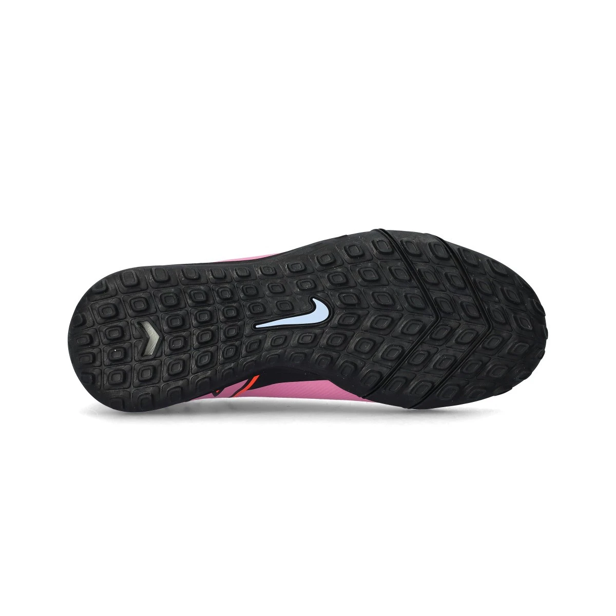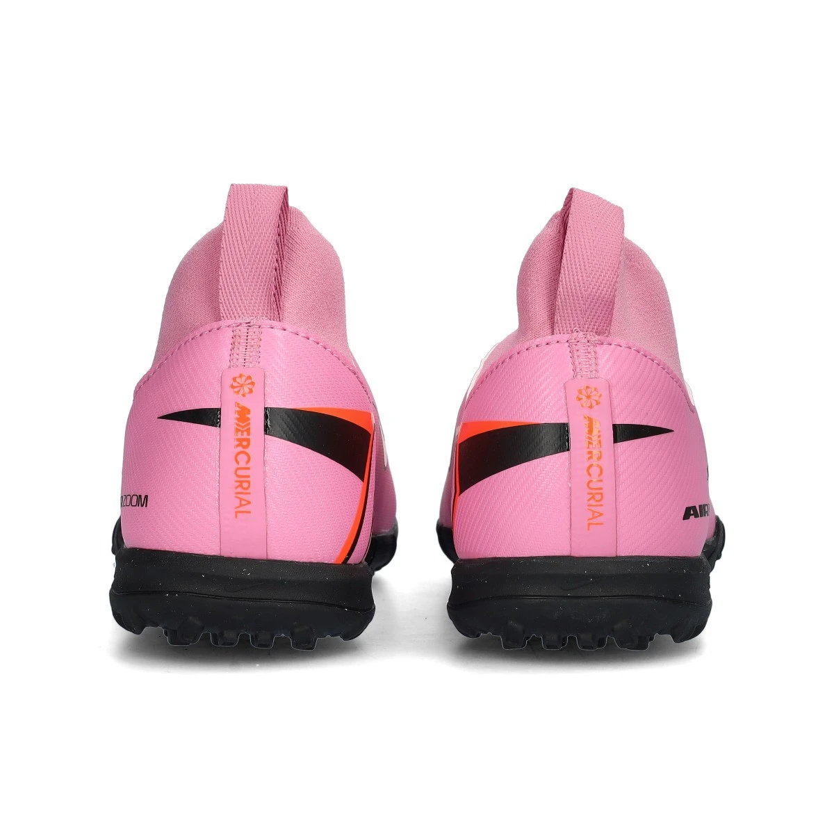 Chaussures de football Nike Zoom Mercurial Superfly 10 Academy Turf pour enfant. Chaussures à tige synthétique avec chaussette intégrée, conçues pour jouer sur moquette, gazon artificiel ou béton. Modèle amateur en coloris Magic Flamingo-Black-Total Crimson.