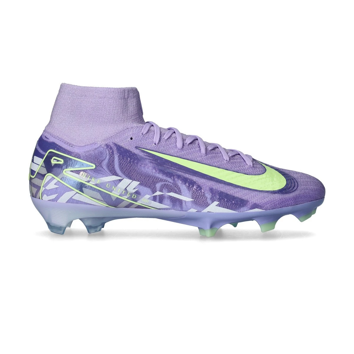 Chaussures de football Nike Air Zoom Mercurial Superfly 10 Elite FG pour adultes. Chaussures filetées, avec maintien de la cheville, pour une utilisation sur des terrains en gazon naturel. Chaussures haut de gamme pour les joueurs rapides en Purple Agate-Barely Volt.