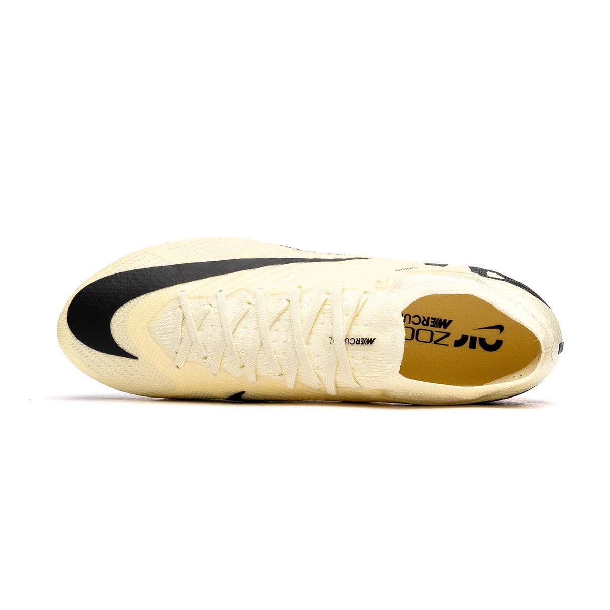 Chaussure de football Air Zoom Mercurial Vapor 15 Elite AG-Pro. Chaussures en fil avec chaussette, à utiliser sur les terrains en gazon artificiel. Chaussures haut de gamme en couleur Lemonade-Black.