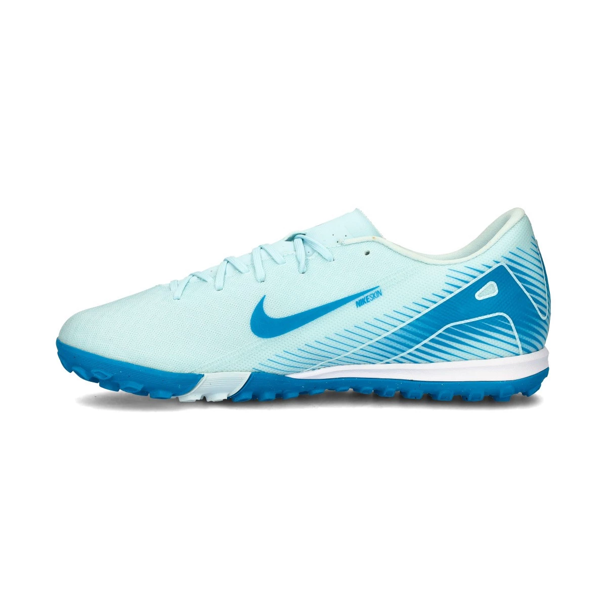 Chaussure de football Air Zoom Mercurial Vapor 16 Academy Turf. Tige synthétique pour une utilisation sur moquette, gazon artificiel ou terrains en béton. La chaussure est disponible en Glacier Blue-Blue Orbit.