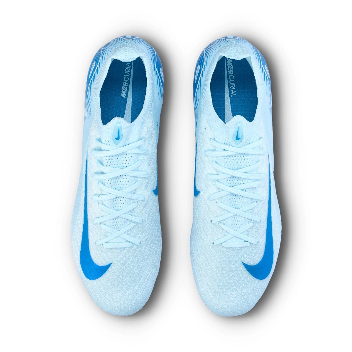 Chaussures de football Nike Air Zoom Mercurial Vapor 16 Elite AG-Pro. Chaussures en fil, pas montantes, pour une utilisation sur les terrains en gazon artificiel. Chaussures haut de gamme pour les joueurs rapides en coloris Glacier Blue-Blue Orbit.